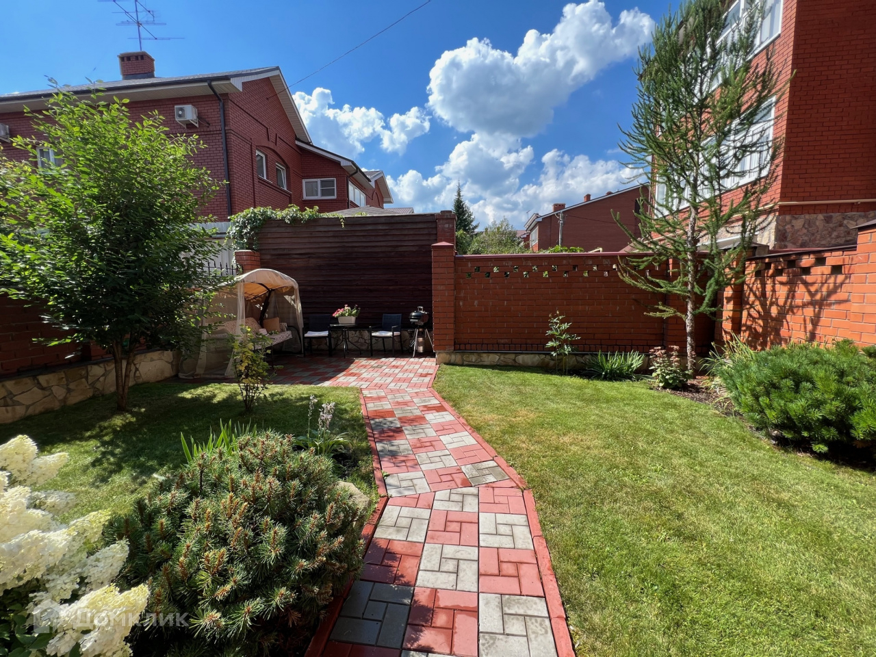 Участок 3 сотки с насаждениями и уличной мебелью, автоматические ворота.