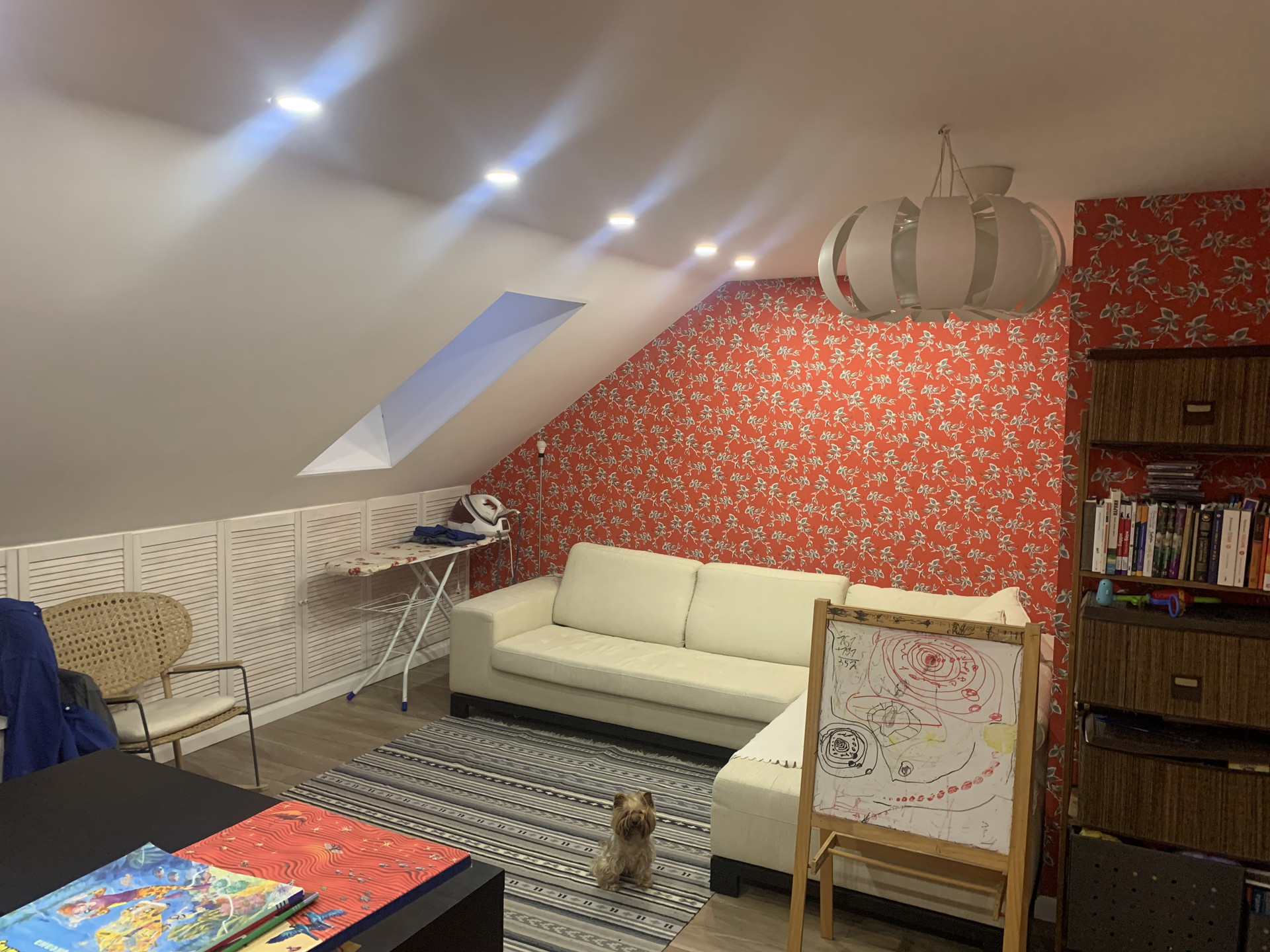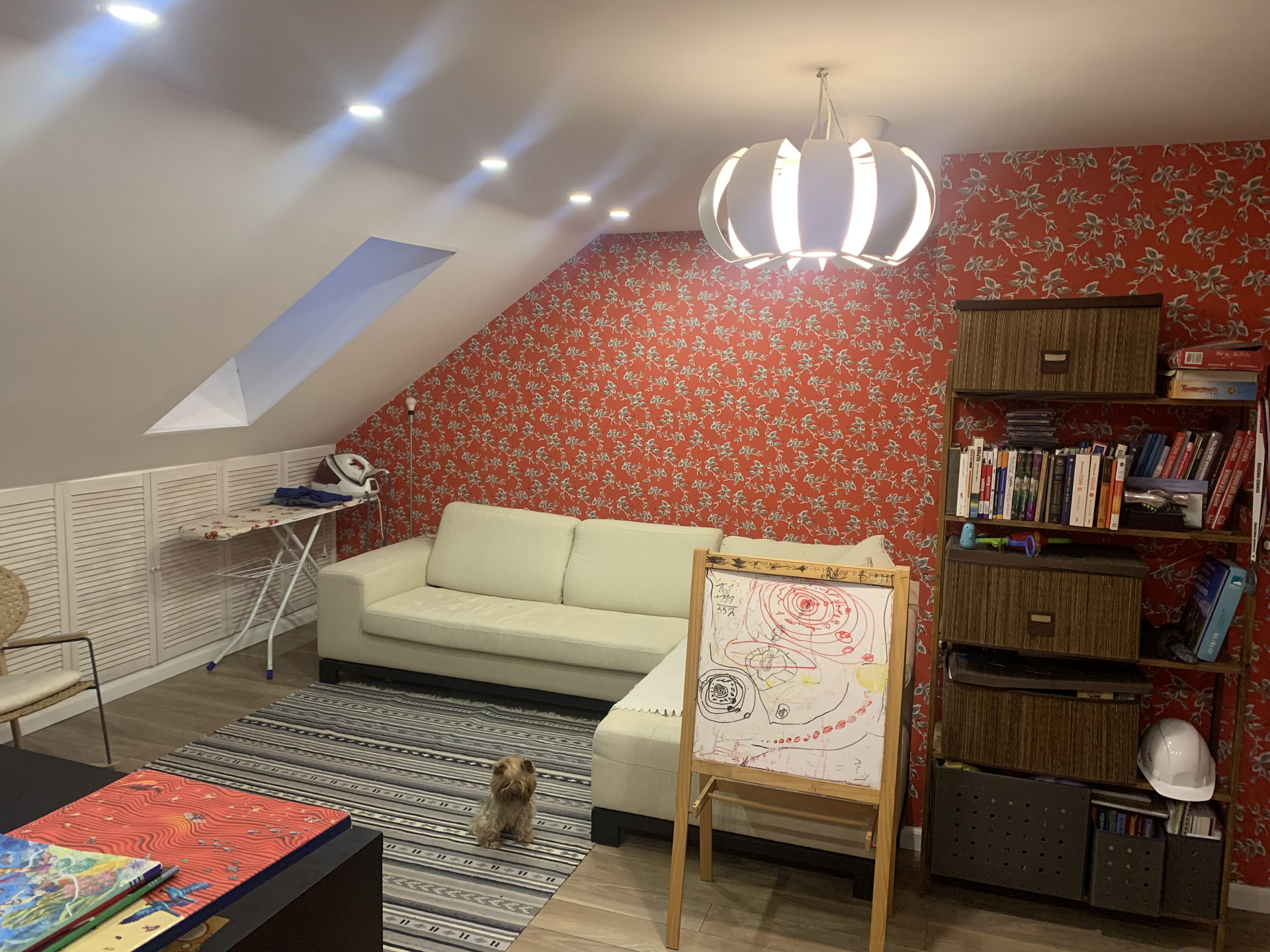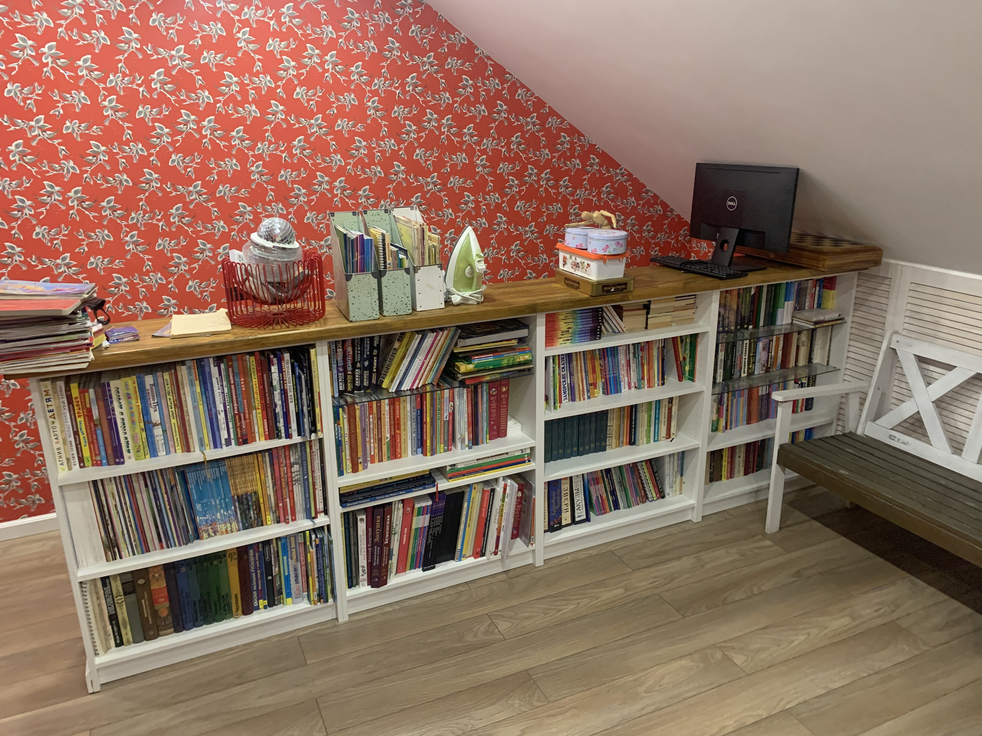 3 этаж: библиотека-кабинет с открытым пространством, санузел с душевой кабиной, кладовка, и множество мест для хранения вещей в скрытых нишах.