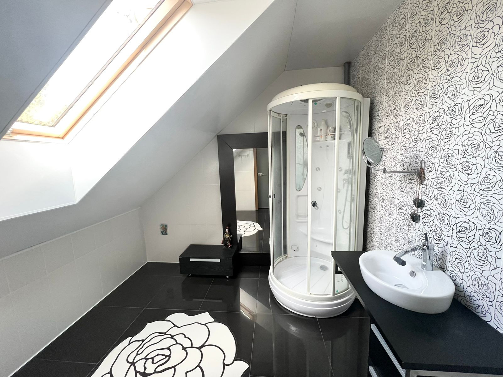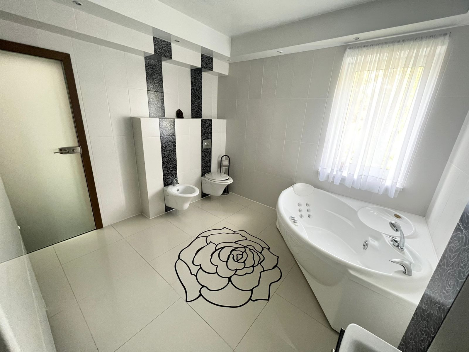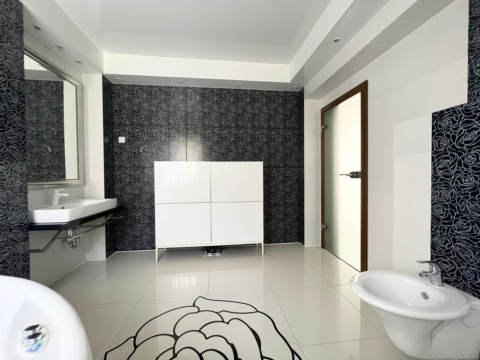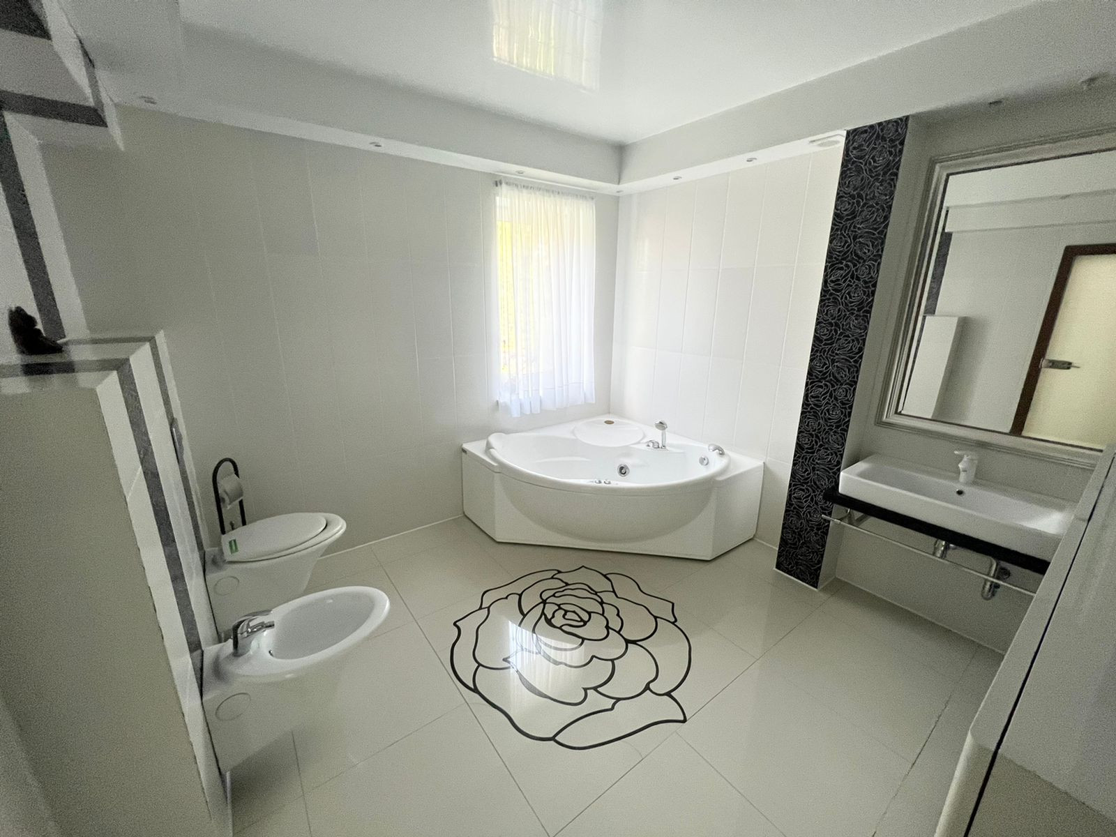 На третьем этаже спальня, ванная. А также имеется рабочий кабинет.