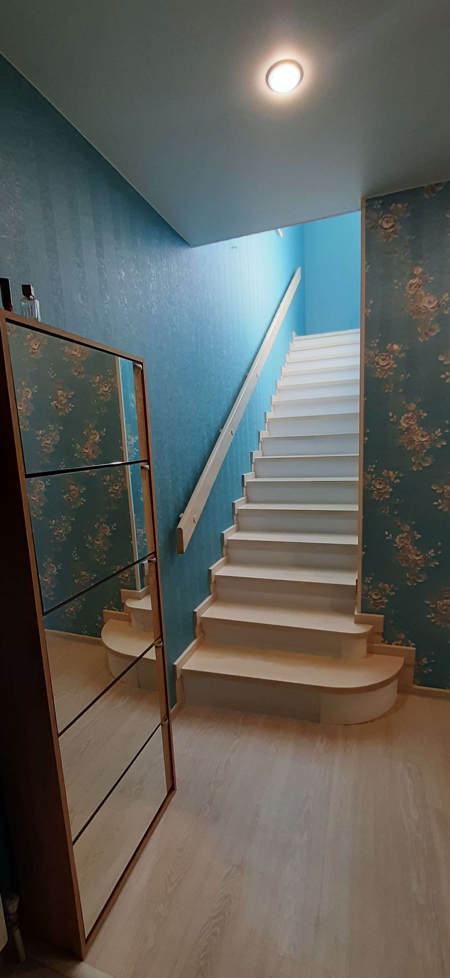 1 этаж - кухня, гостинная с выходом на придомовую территорию, кладовая, санузел.