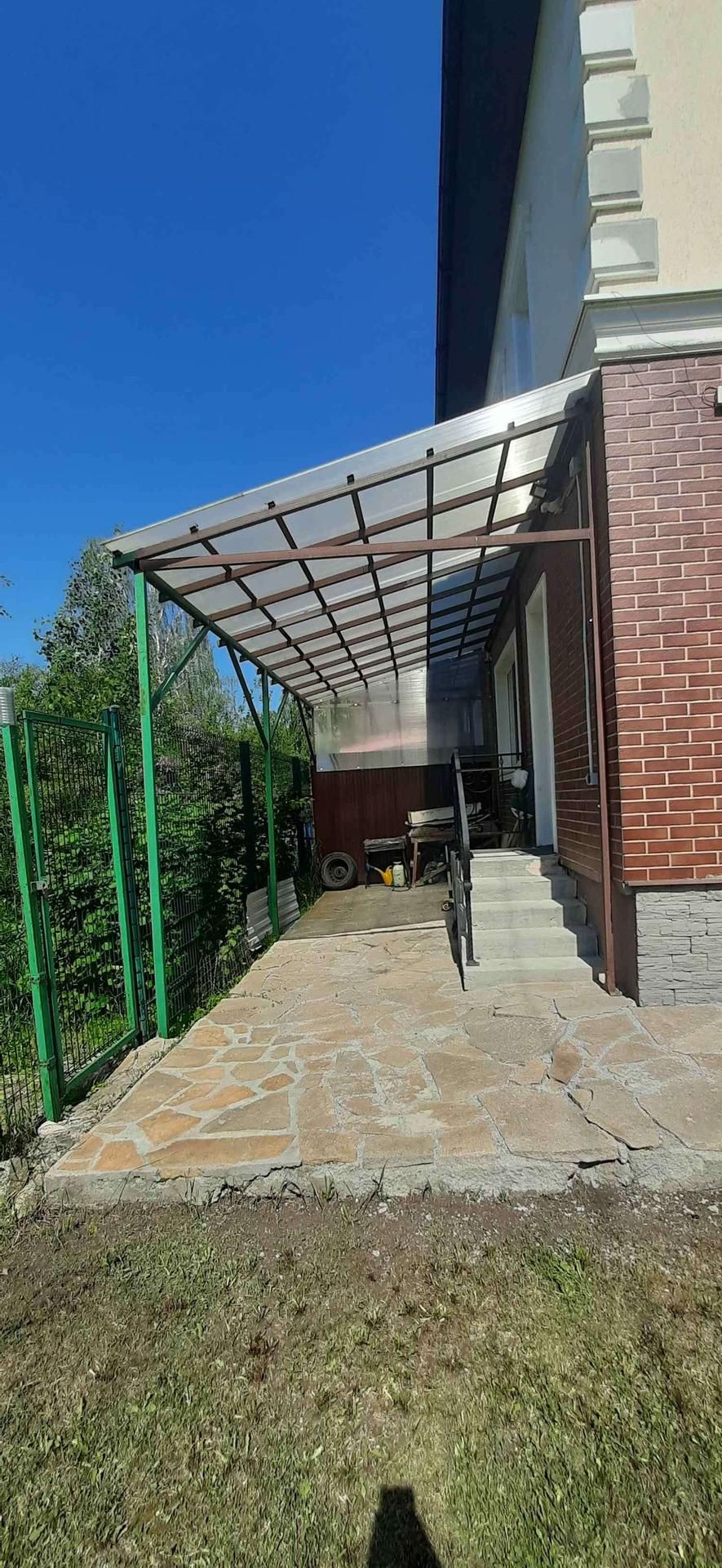 В доме газовое отопление от котла,  резервный котёл  -   электрический. Электричество,  вода, газ, канализация - централизованное.Парковка  на 4 автомашины, большой придомовой участок, где есть   освещение и вода для полива. Так же на участке можно установить бассейн,  баню, теплицу, мангал. Есть  возможность расширить участок, под гараж.