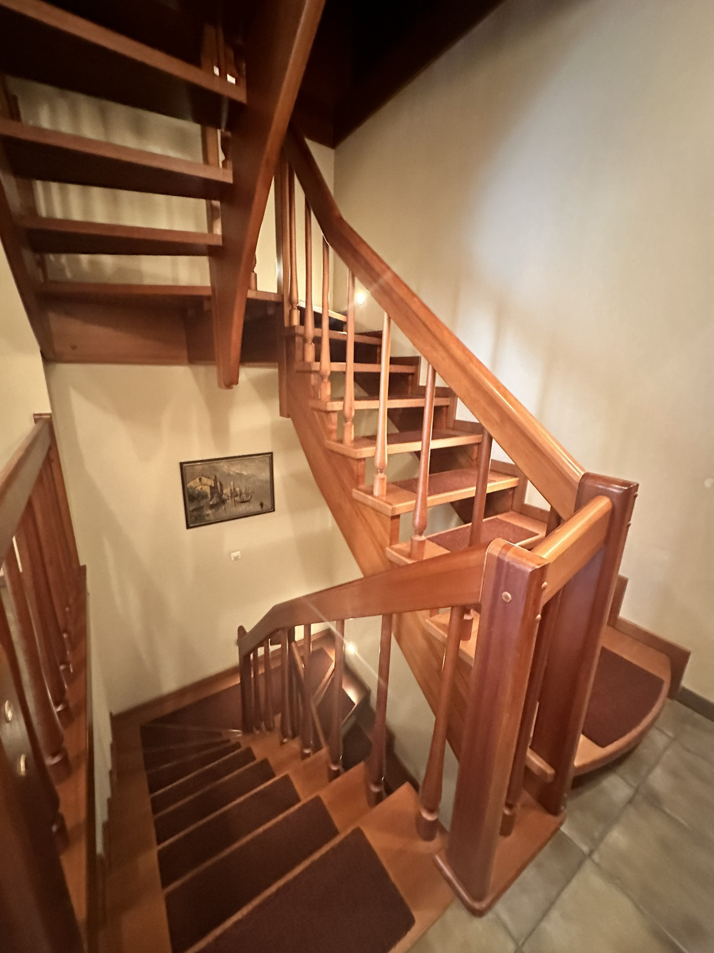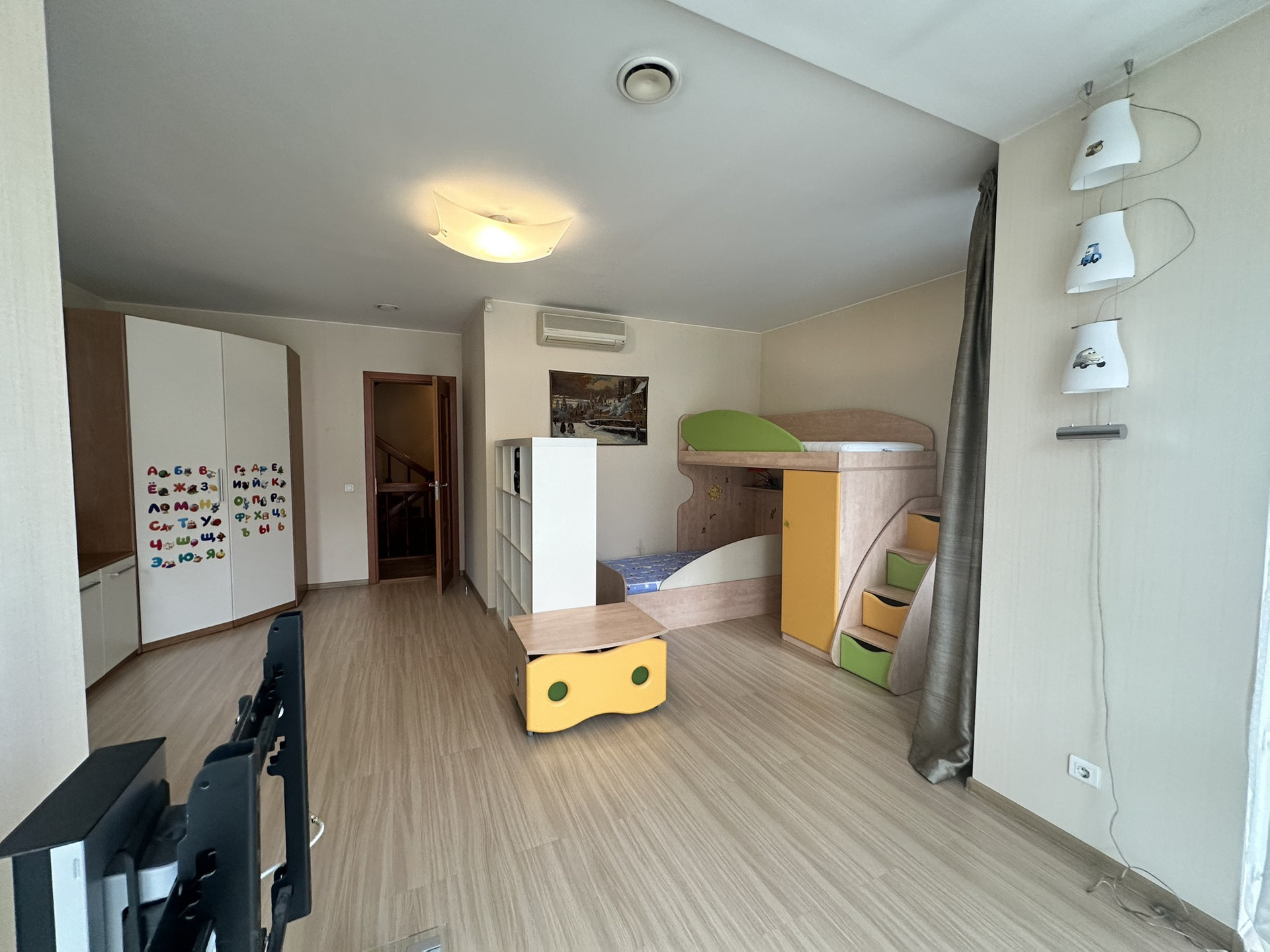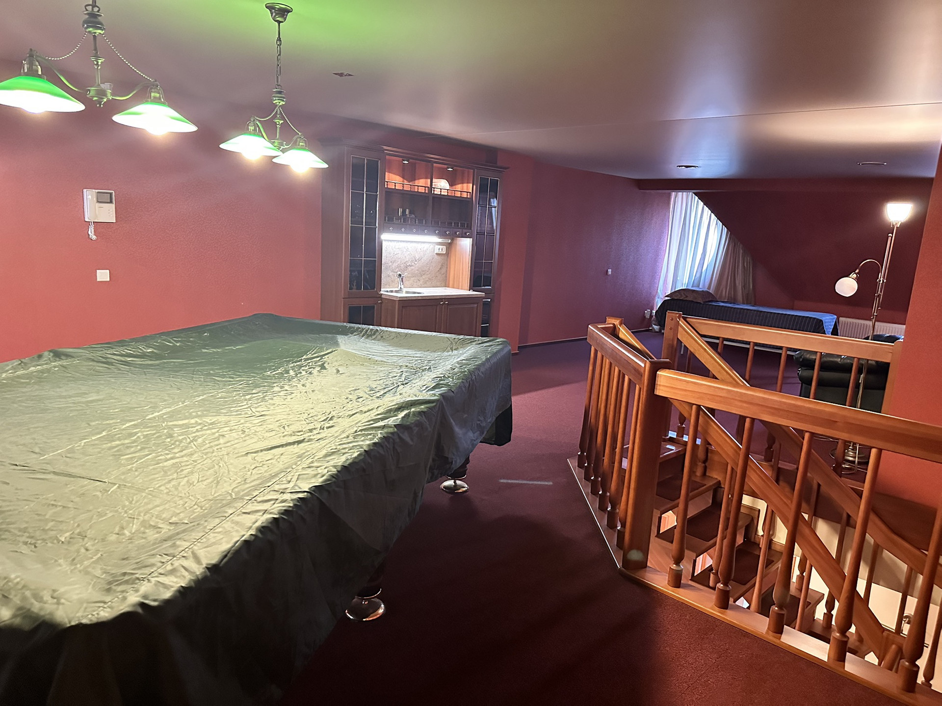Четвертый этаж занимает зона для игры в бильярд и просторная зона отдыха. Все этажи соединены лестницей из натурального дерева в едином стиле.