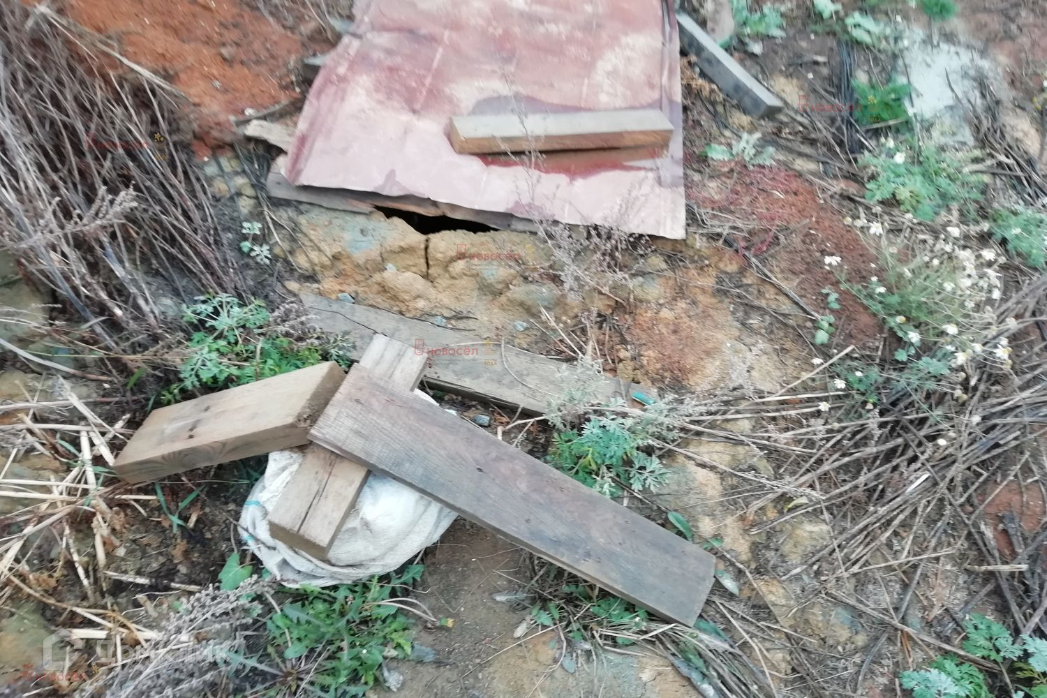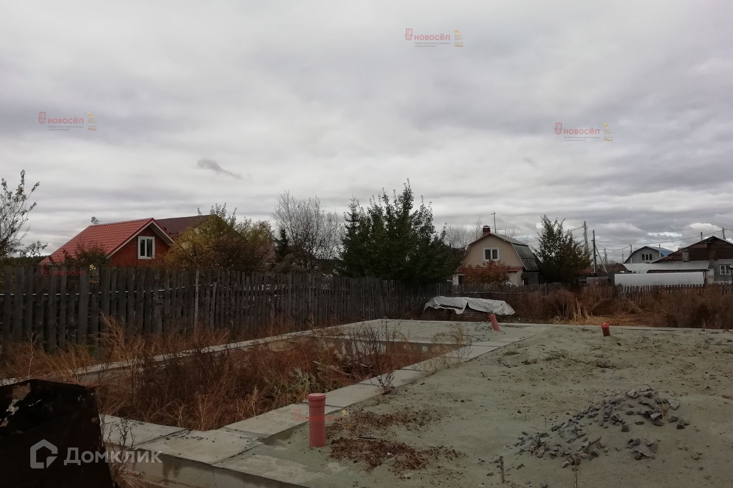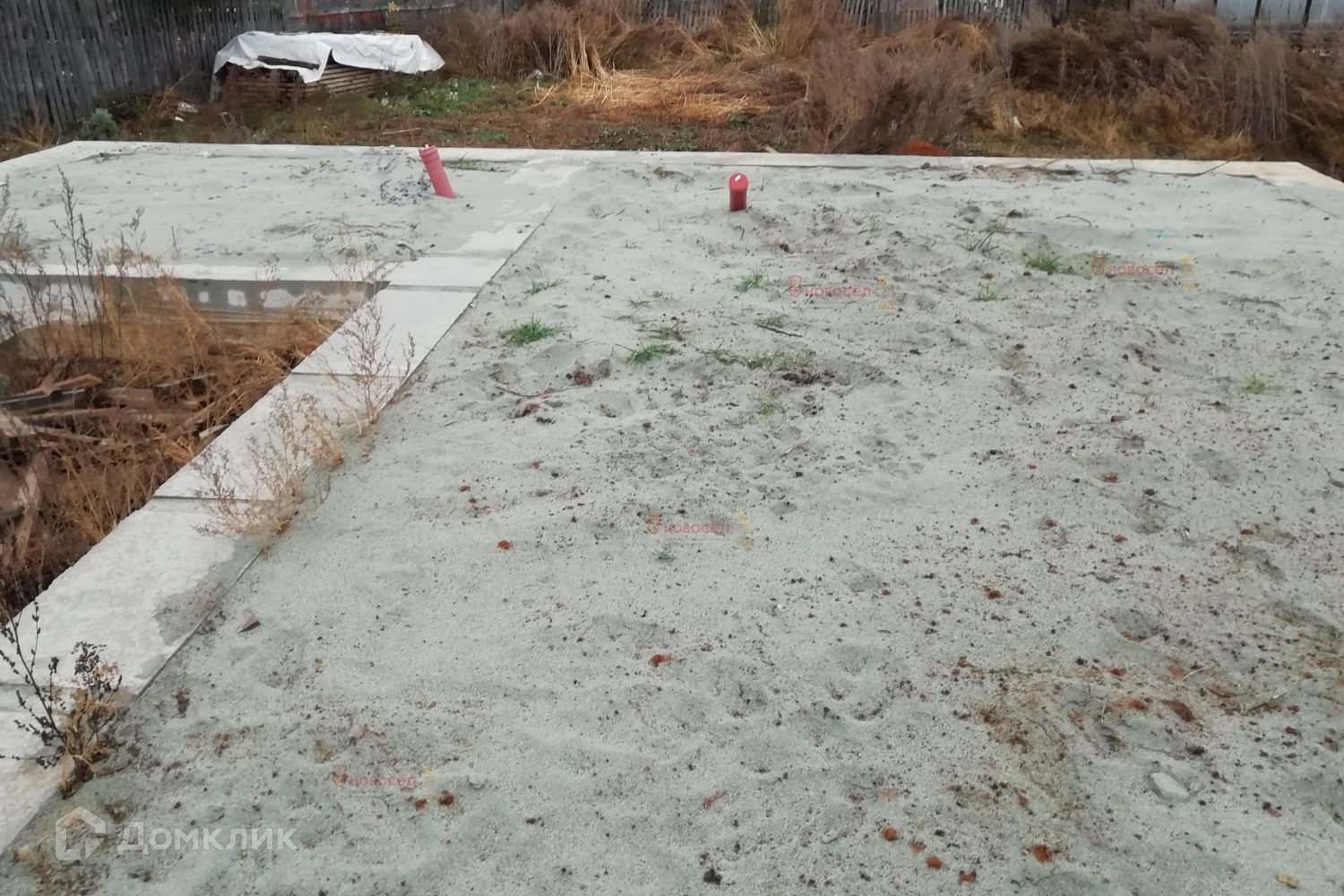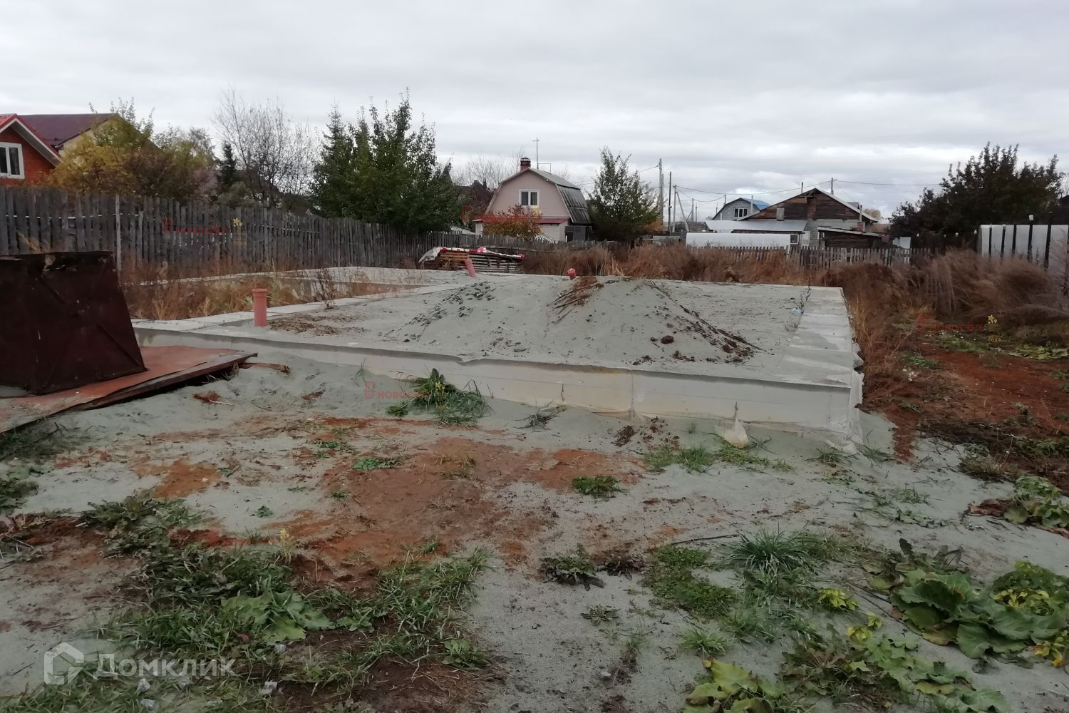 На участке фундамент под дом размером 10 х 10 метров и скважина 50 метров.