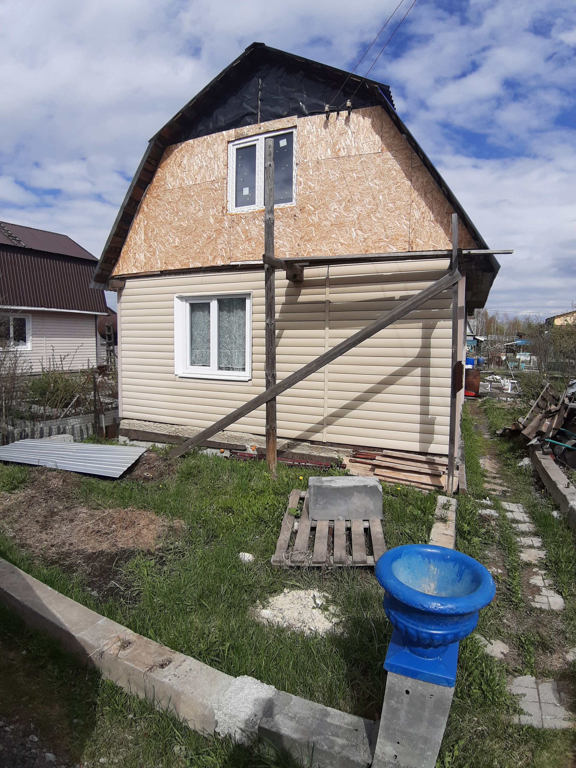 Садовый участок в  СНТ ЯНТАРЬ (10 минут от Химмаша на машине по Челябинскому тракту) На участке есть домик 25 кв.для летнего и зимнего проживания и пристрой из твинблока-  10кв.м.  Участок разработан. Есть яблоня, вишня и слива, крыжовник. Баня- хорошая- пол и полки не гнилые ( на фото видно). Около дома отсыпана щебнем стоянка на 2 машины. Дом утеплен изнутри, печки нет, Но приехать зимой и включить обогреватель и нагреть дом можно. Проживали зимой.!!!!  Есть второй этаж по лестнице и вторая комната -мансарда летняя (на фотографии видно).  Рядом с домом колонка. Используется для питья и для полива. Электрика вся по дому поменяна. Дом не оформлен. Но в СНТ можно его оформить и имеется прописка!!!. Звоните!! На просмотр заранее!!