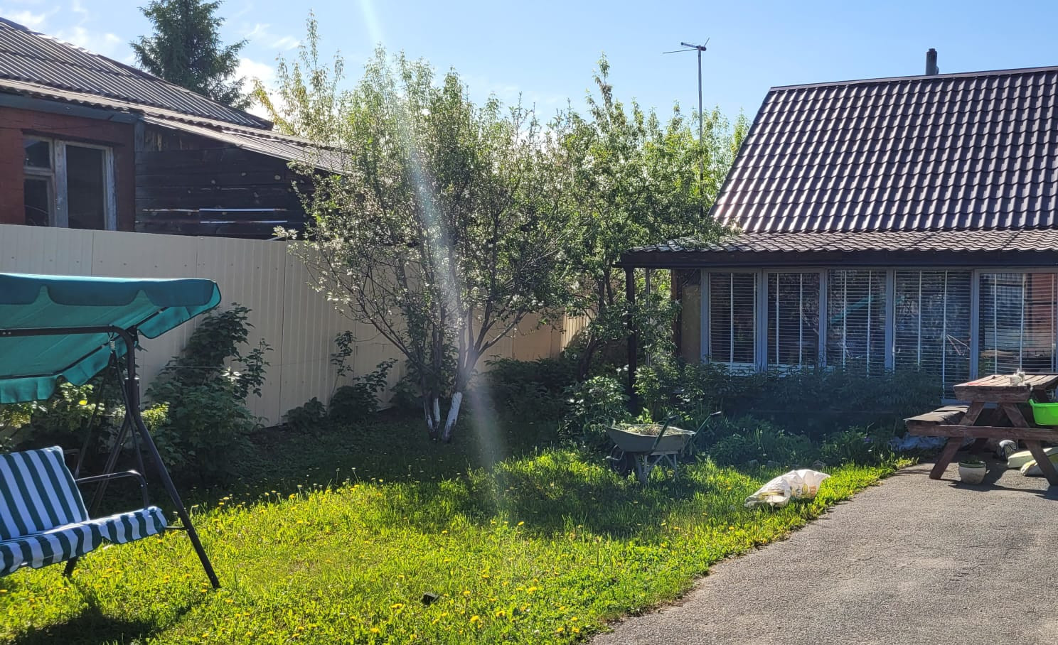 Участок разработан, имеет многолетние насаждения, плодовые деревья, теплицу, скважину.