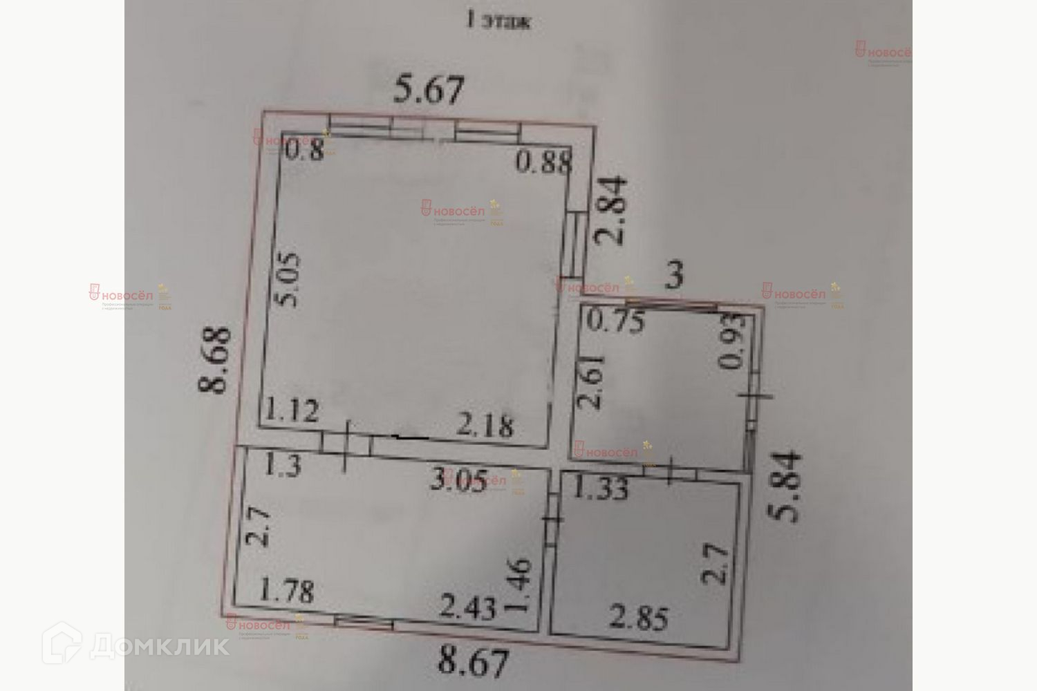 1 этаж: кухня-гостиная, большая комната на 3 окна, просторная прихожая, туалет, душевая кабина.
