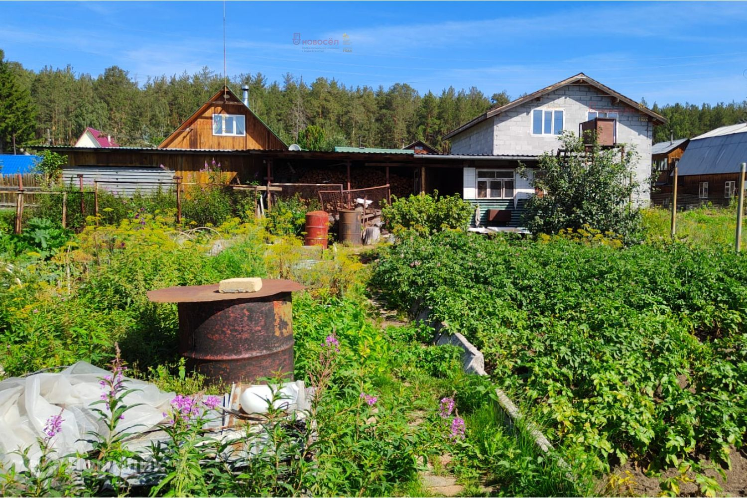 Объект № 177521. Продaется жилой дом с баней на участке 5 соток в СНT Визoвец-5, участок 165, Чуcовcкой трaкт. Гараж расположен на участке 6 соток, участок 165а. По периметру установлен кованый забор.