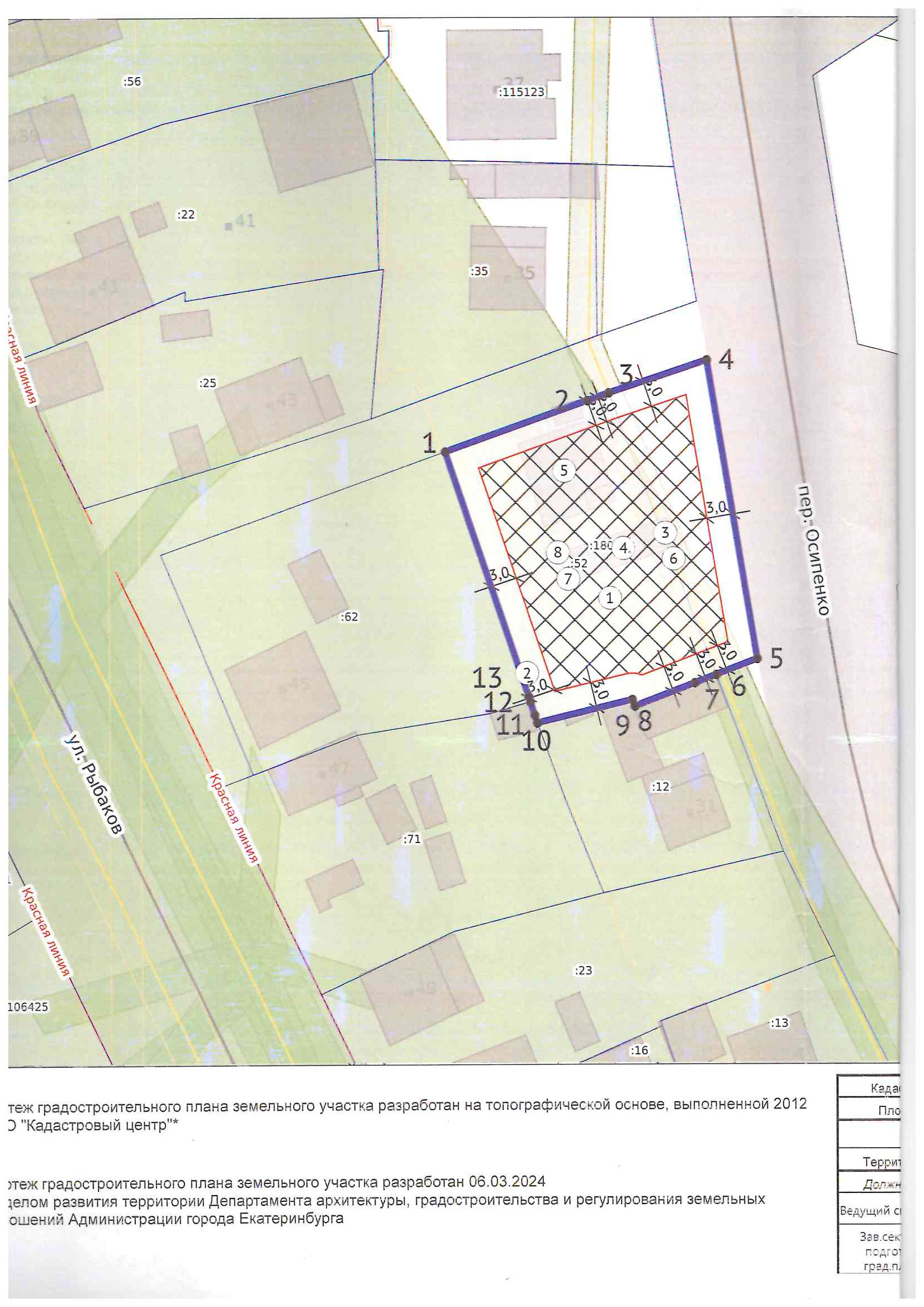 Получен ГПЗУ в марте 2024 г. Пятно застройки с существующими сетями уличного освещения и водопровода- не менее 430 кв.м. (~15,5 м * 28 м), с выносом - не менее 634 кв.м. (~23,5 м * 27 м)