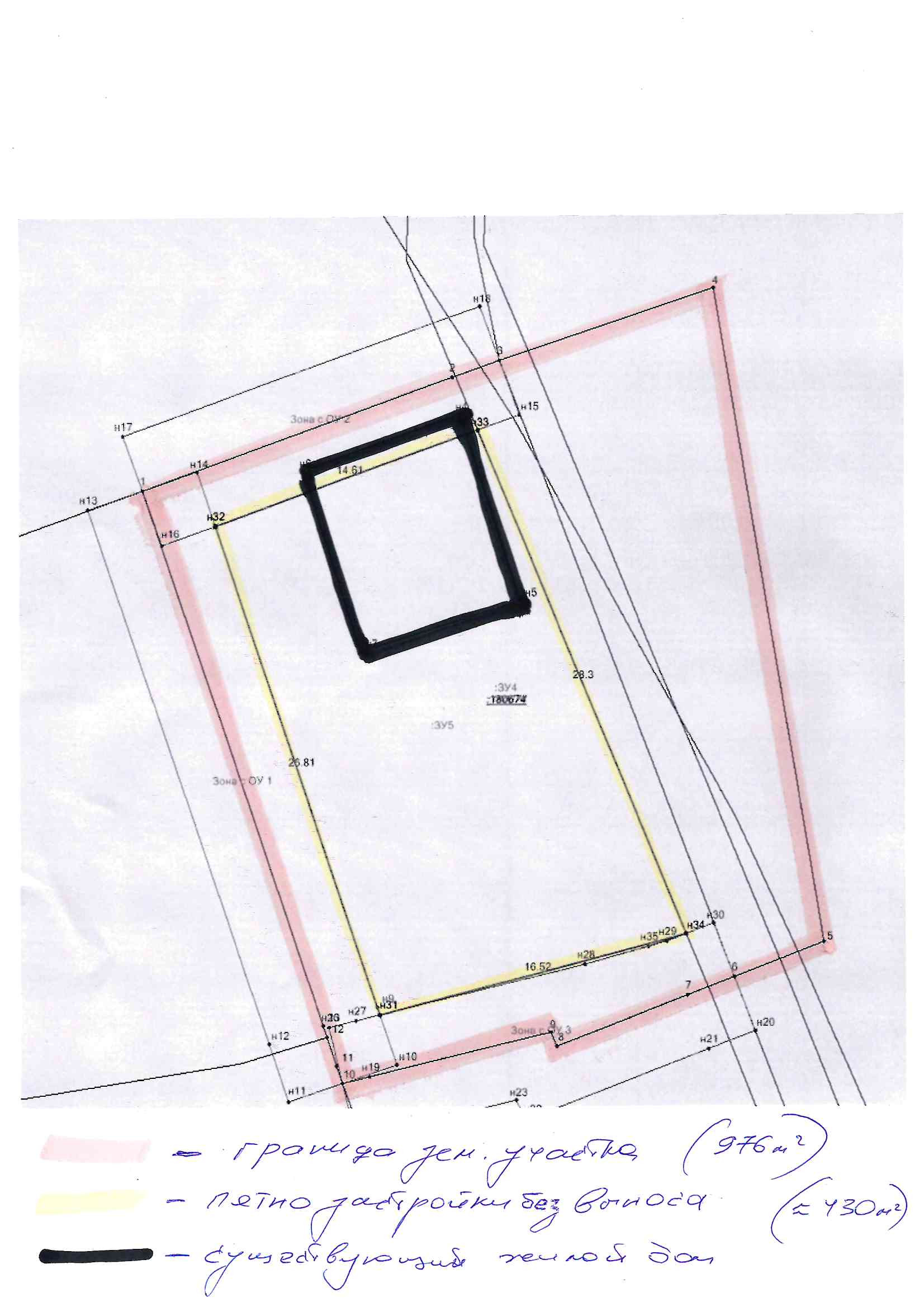 ЗУ: Земли населенных пунктов, площадь 976 кв.м.