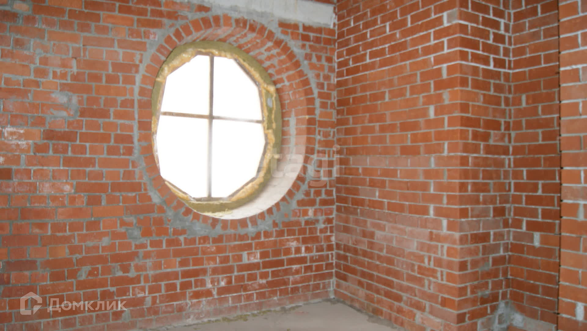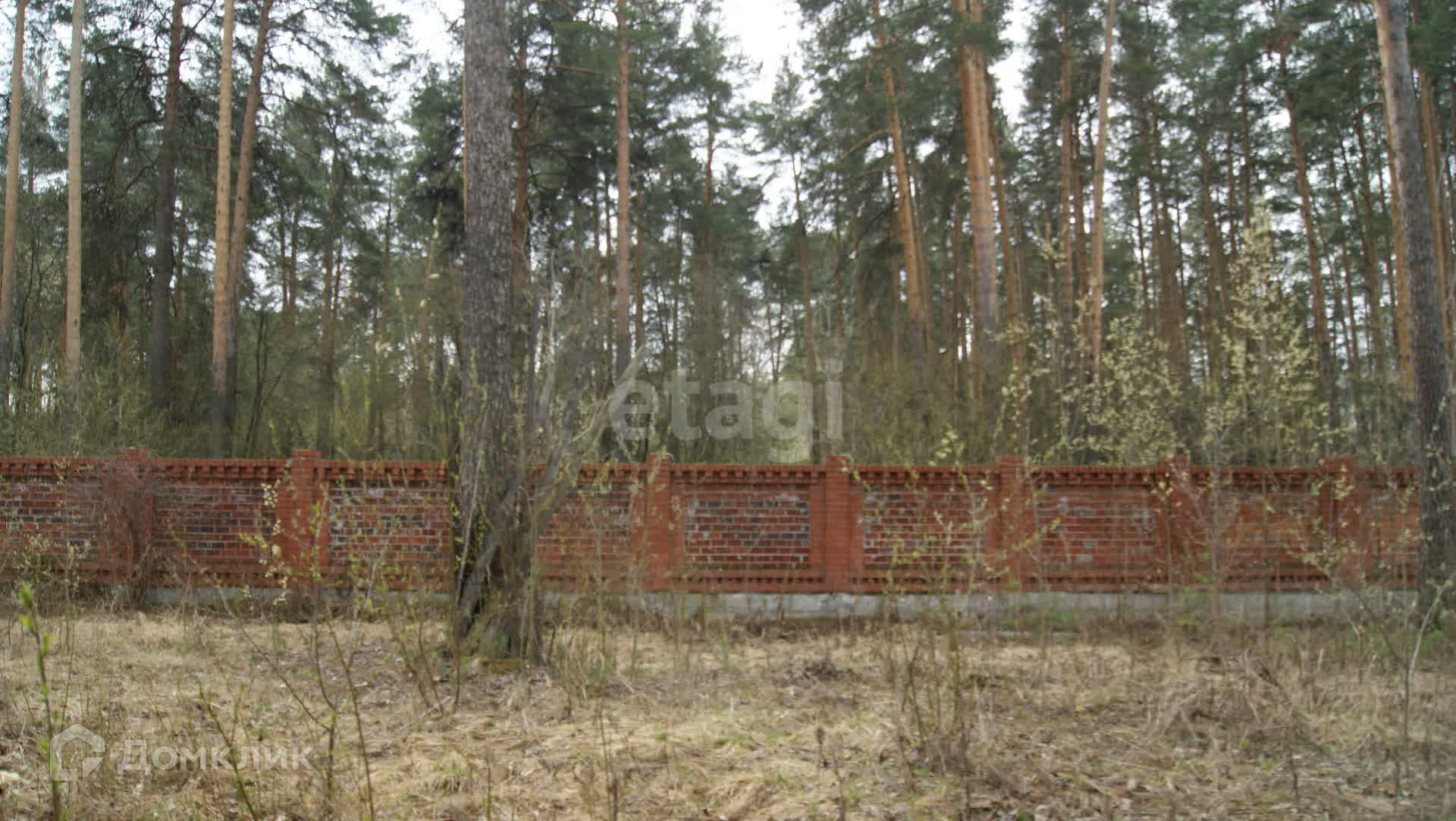 Участок огражден кирпичным забором.