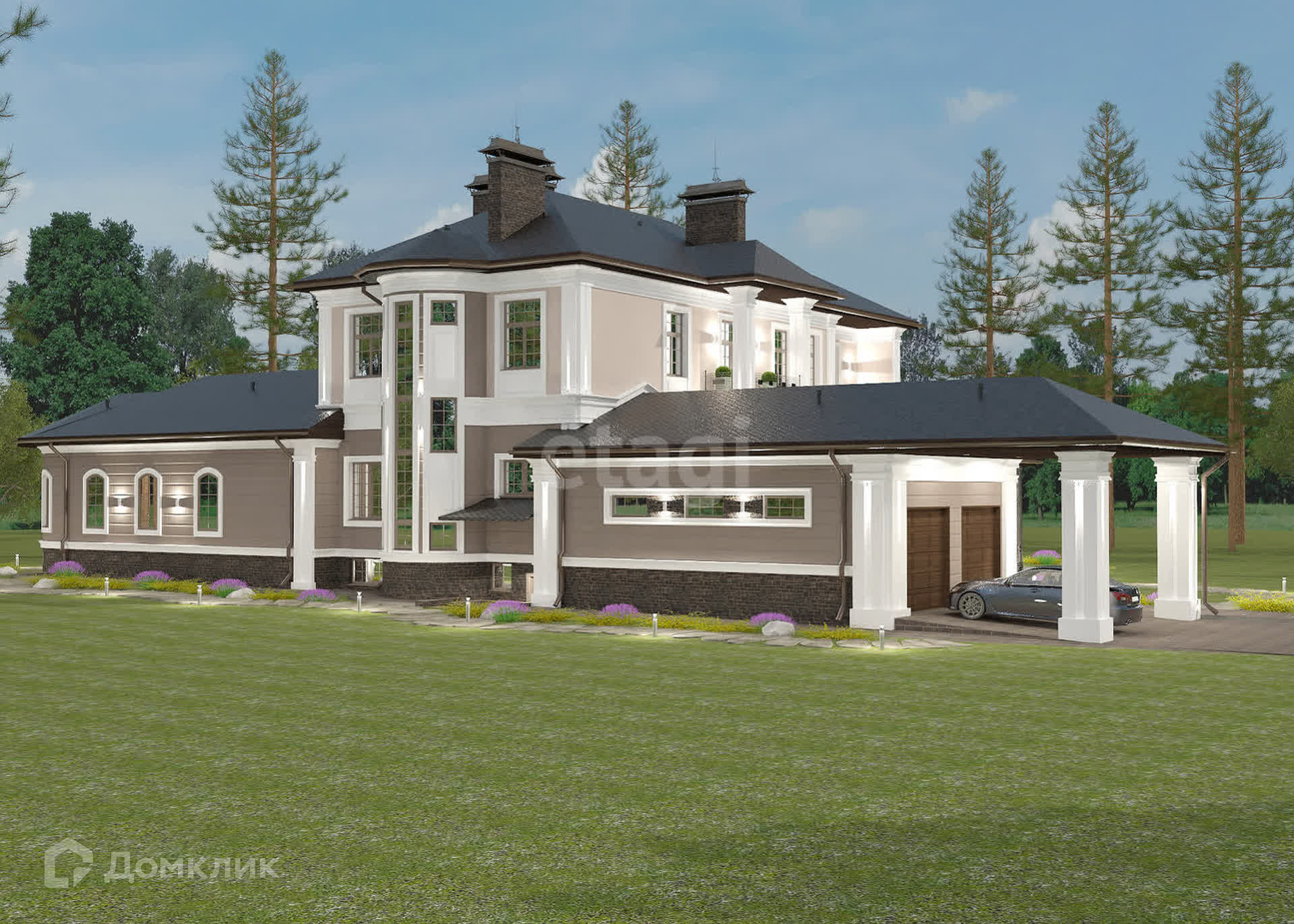 На участке есть трансформатор на 400кв и насосная станция. Вода из артезианской скважины, разведена по участку.