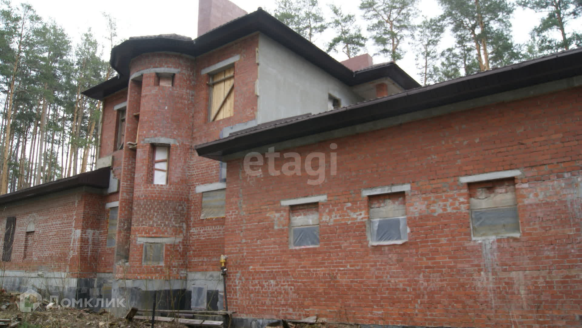 На территории построены 4 коттеджа (кирпич), от 270 до 600 м2. Два из них готовы для чистовой отделки, в них заведено электричество.