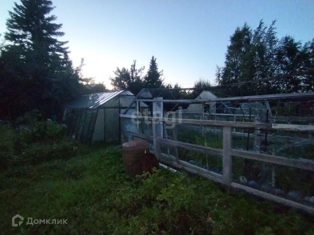 Участок разработан, имеются различные насаждения, теплица, есть зона отдыха, множество грядок, все для заядлых дачников.