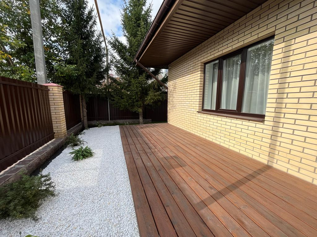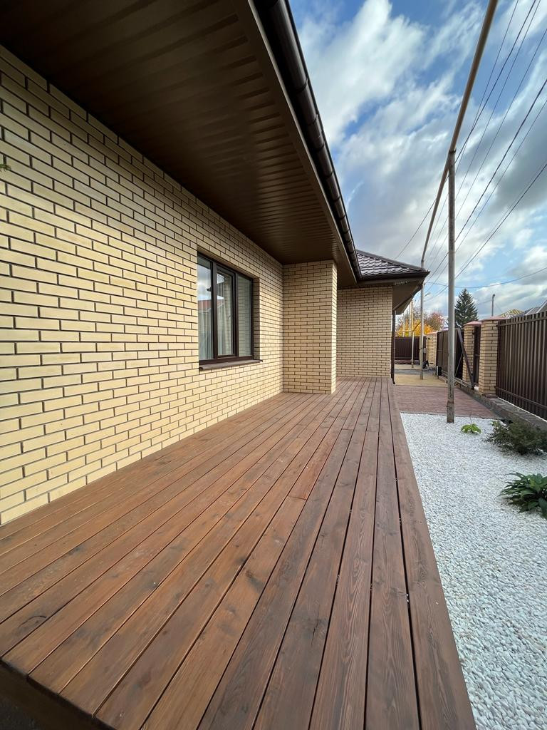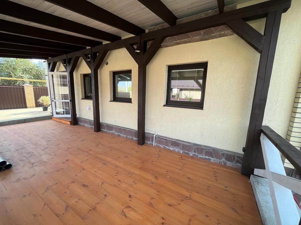 На улице большая веранда, с зоной отдыха. Отдельно зона барбекю. Территория ухожена. Гараж на 2 авто (отапливаемый). Парковка во дворе на 3 авто.