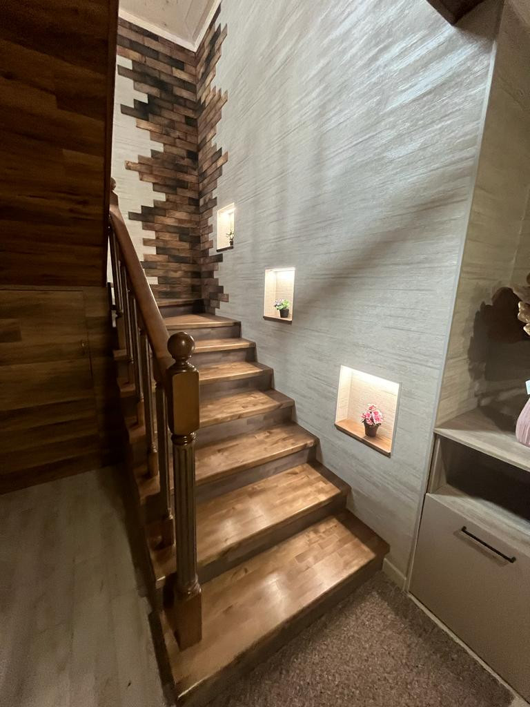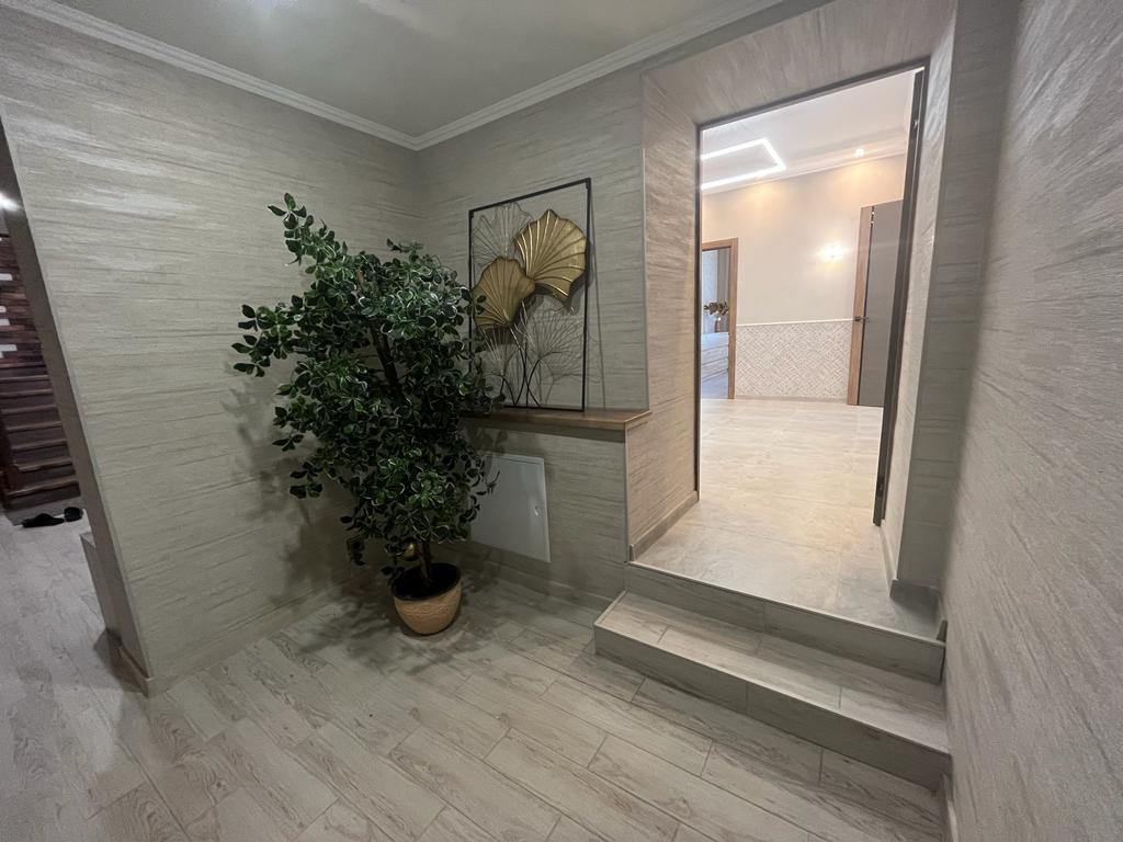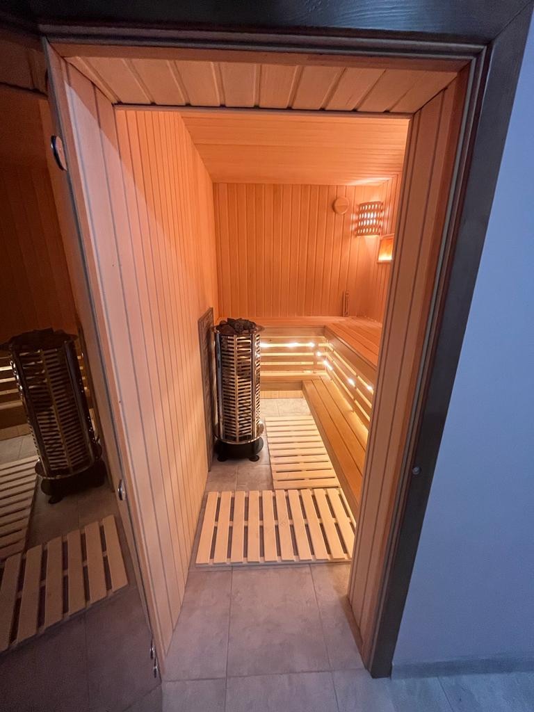На первом этаже расположена большая кухня гостиная, 2 спальни, сан узел, большая гардеробная, сауна, зона отдыха.