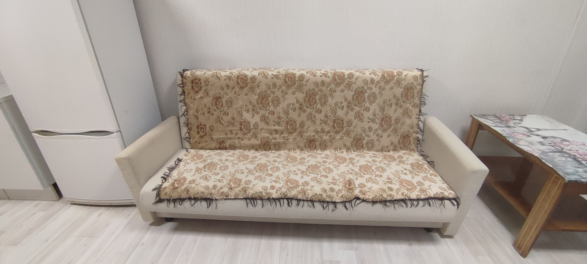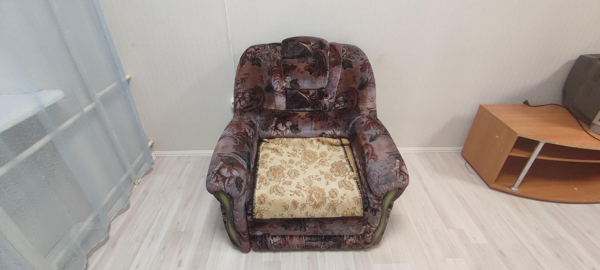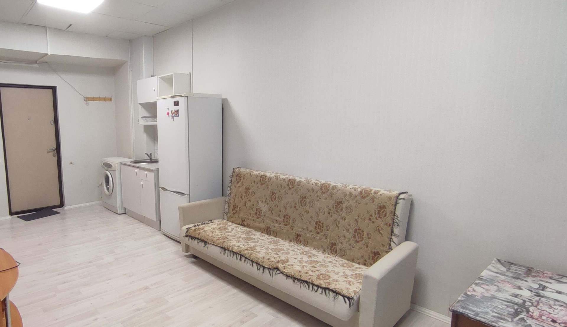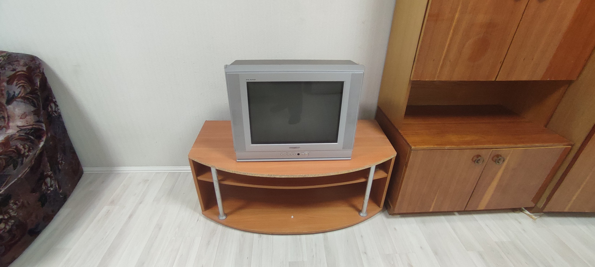 Мебель: раскладной диван, кресло-кровать, шкаф, тумбочка, стол.  Бытовая техника: стиральная машина, телевизор, холодильник - всё есть для комфортного проживания.