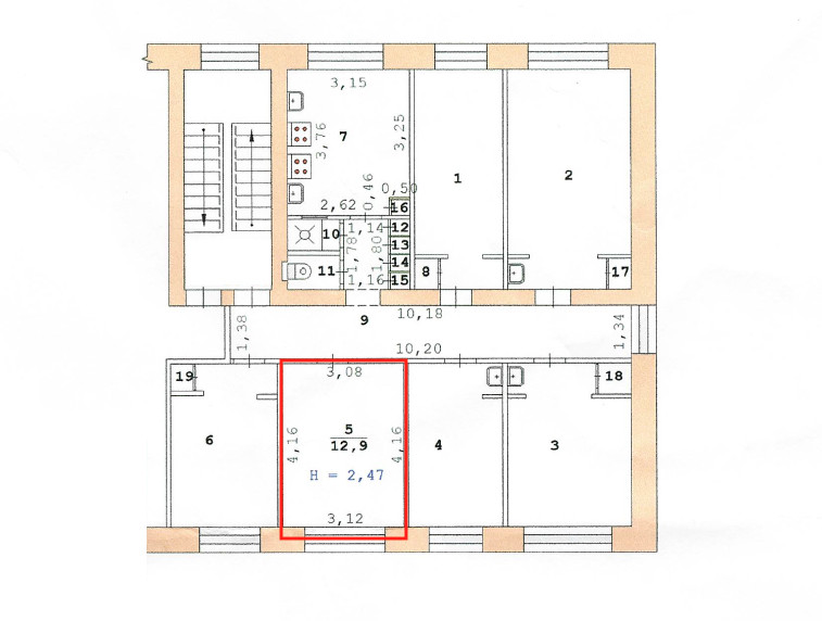 Жилая площадь 12.9 м2