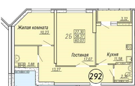 Общая площадь 58 м2