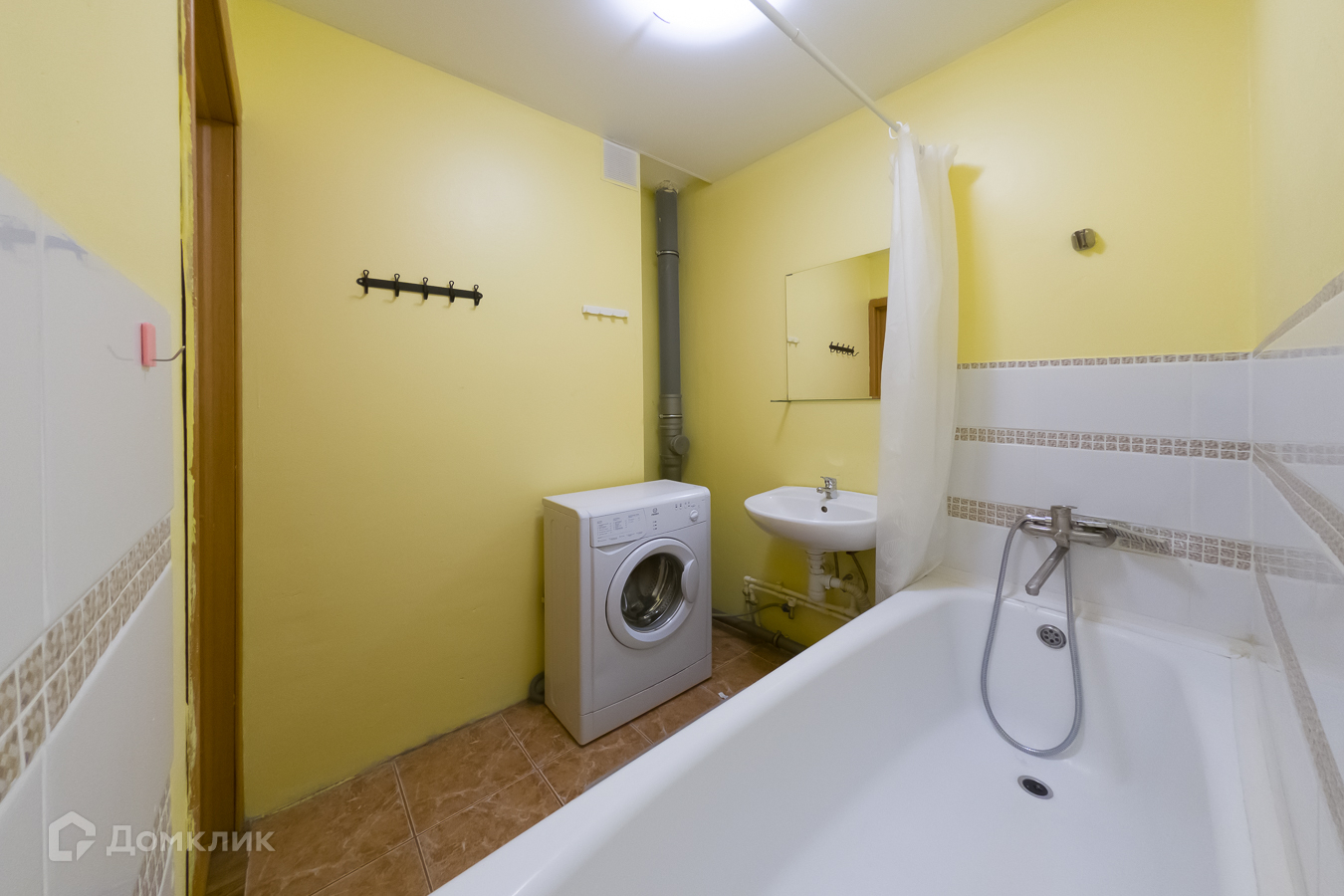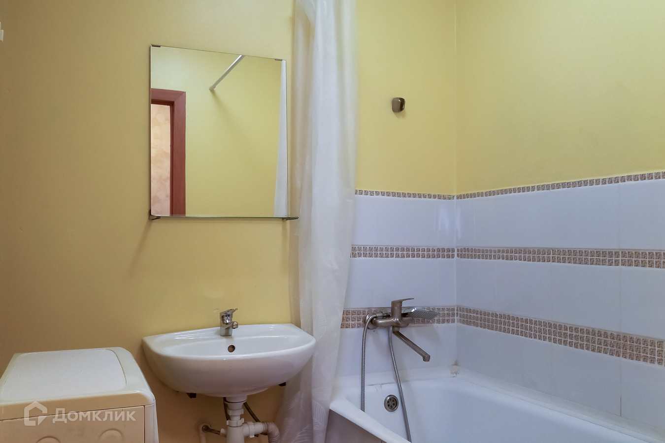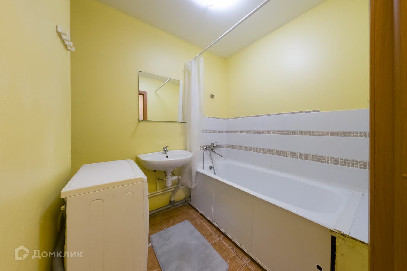 4) В ванной комнате: ванная, стиральная машинка, раковина со смесителем, зеркало.
