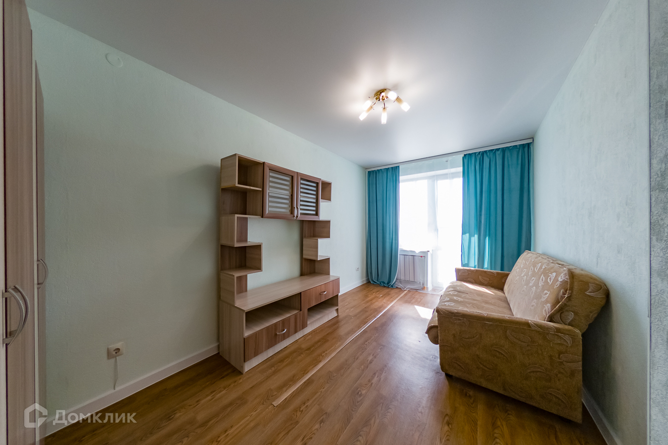6) В маленькой комнате имеется раскладной диван, стенка и два гардеробных шкафа.