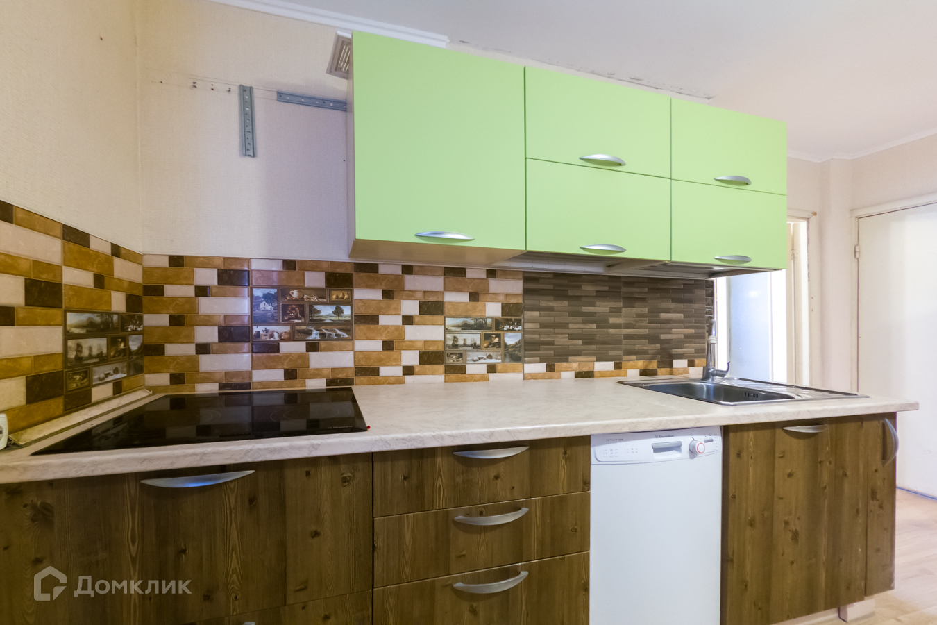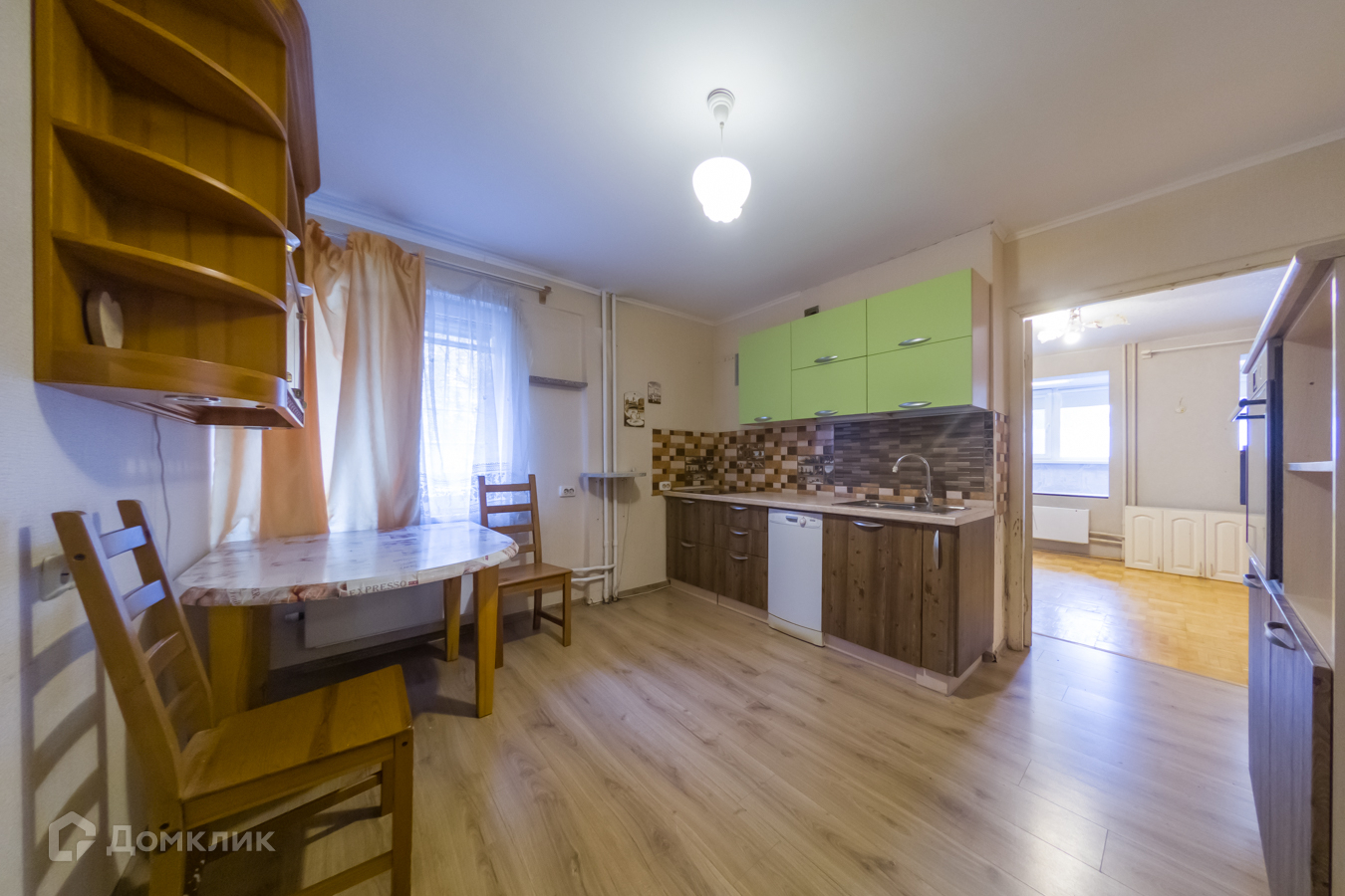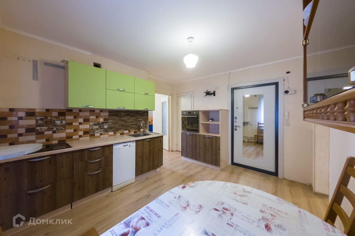 - кухня оборудована техникой: духовой шкаф и варочная поверхность,  холодильник, посудомоечная машина. Имеется обеденный стол со стульями.