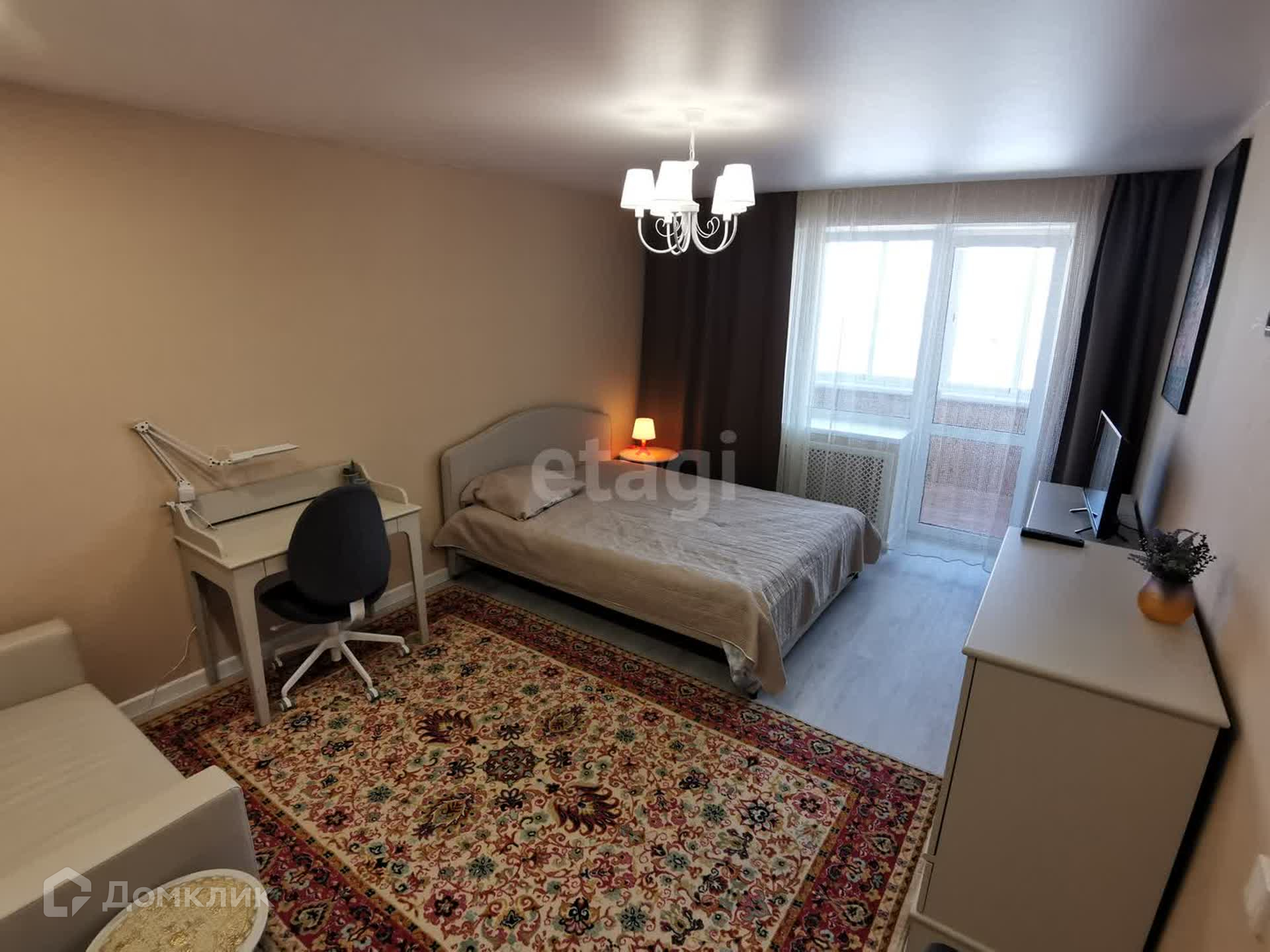 Есть большой застекленный балкон.