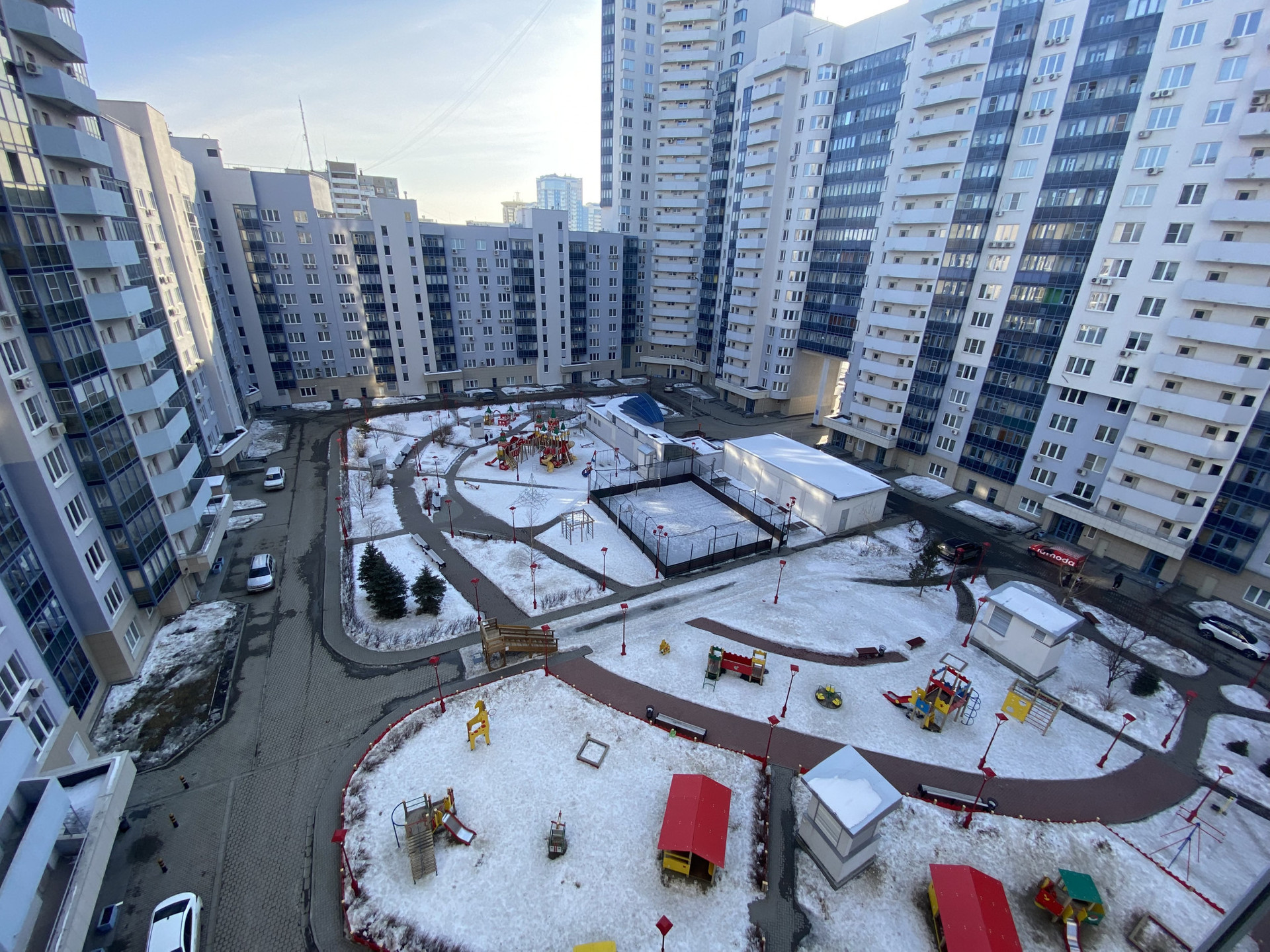 Охраняемая парковка вокруг дома, закрытый уютный, безопасный двор с большой детской площадкой.