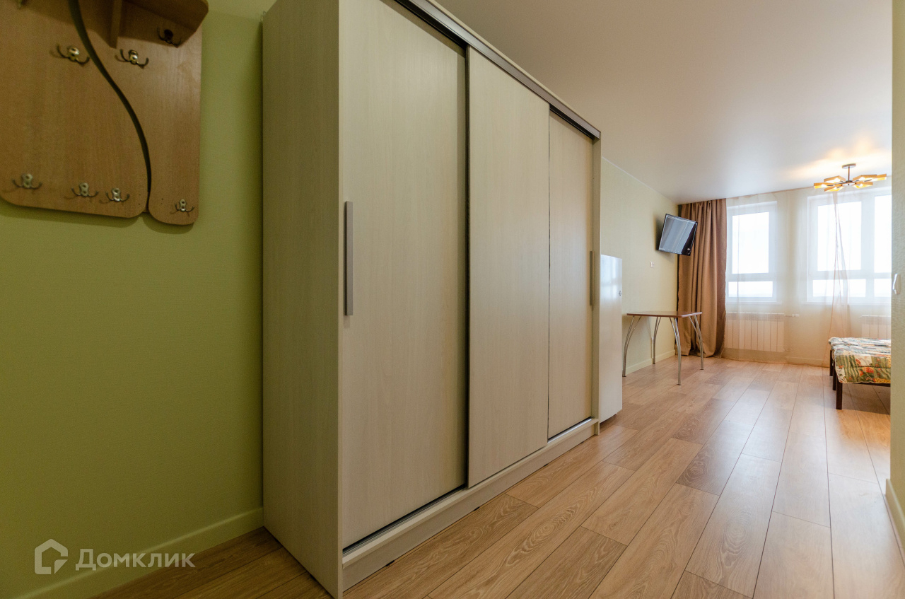 Полностью оборудованная студия 29 кв.м в современном ЖК, есть свой коворкинг центр (можно назначать встречи по работе), консьерж сервис, который поможет разобраться с бытовыми вопросами. В квартире есть все необходимое: кухня, стиральная машина, холодильник, кровати, которые трансформируются в двуспальную при необходимости можно сделать 2 спальных места, шкаф для одежды, ТВ, варочная поверхность, ванная. Шикарный вид на город с 31го этажа