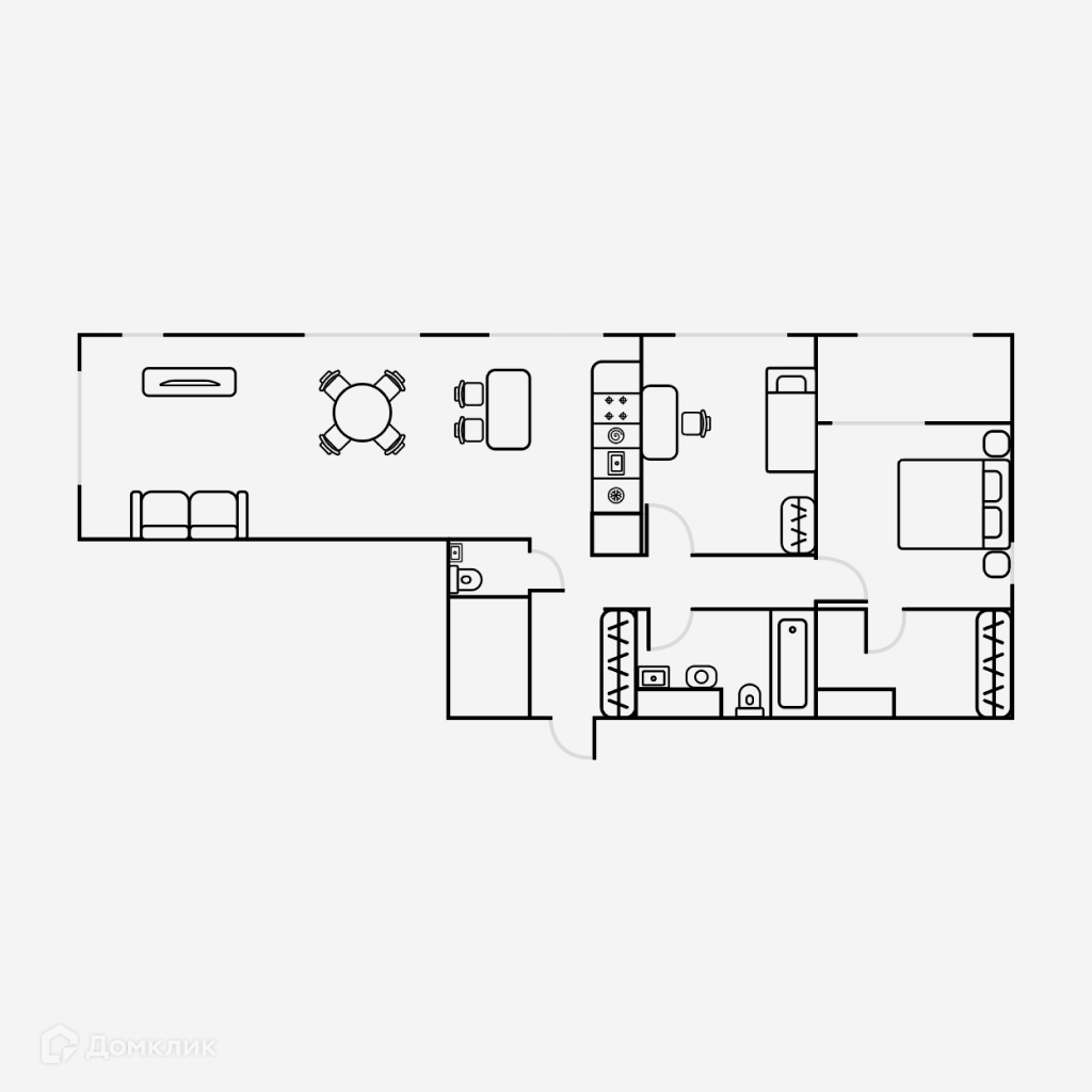 Предлагается в долгосрочную аренду 3-комнатная светлая студия №127 с множеством окон и утепленной лоджией и гардеробной комнатой в арендном Доме «Южные Кварталы» от ДОМ.РФ.