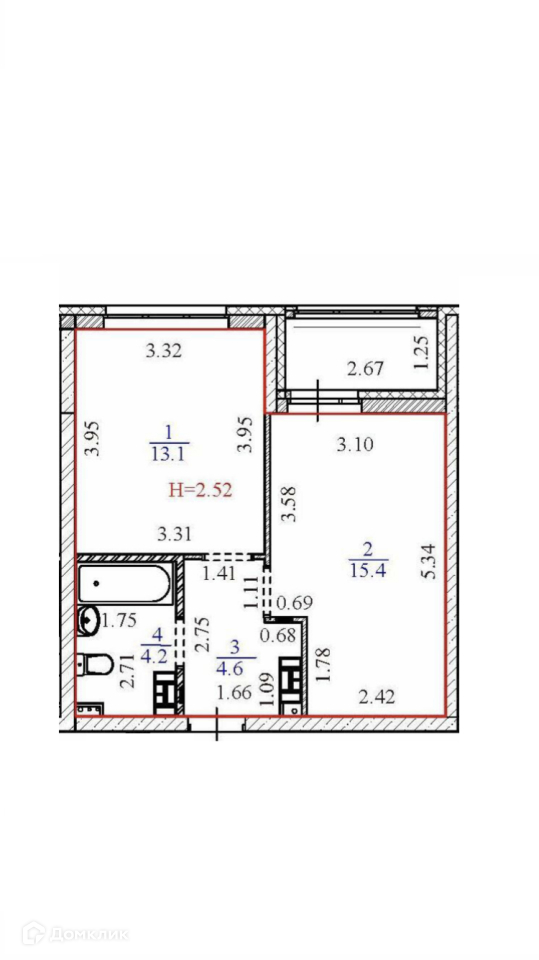 Высота потолков 2.6 м
