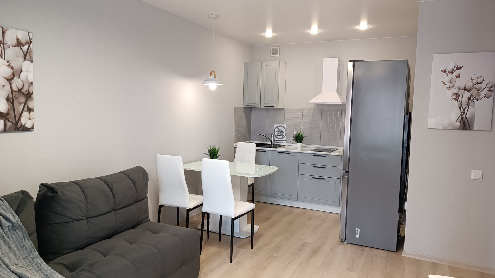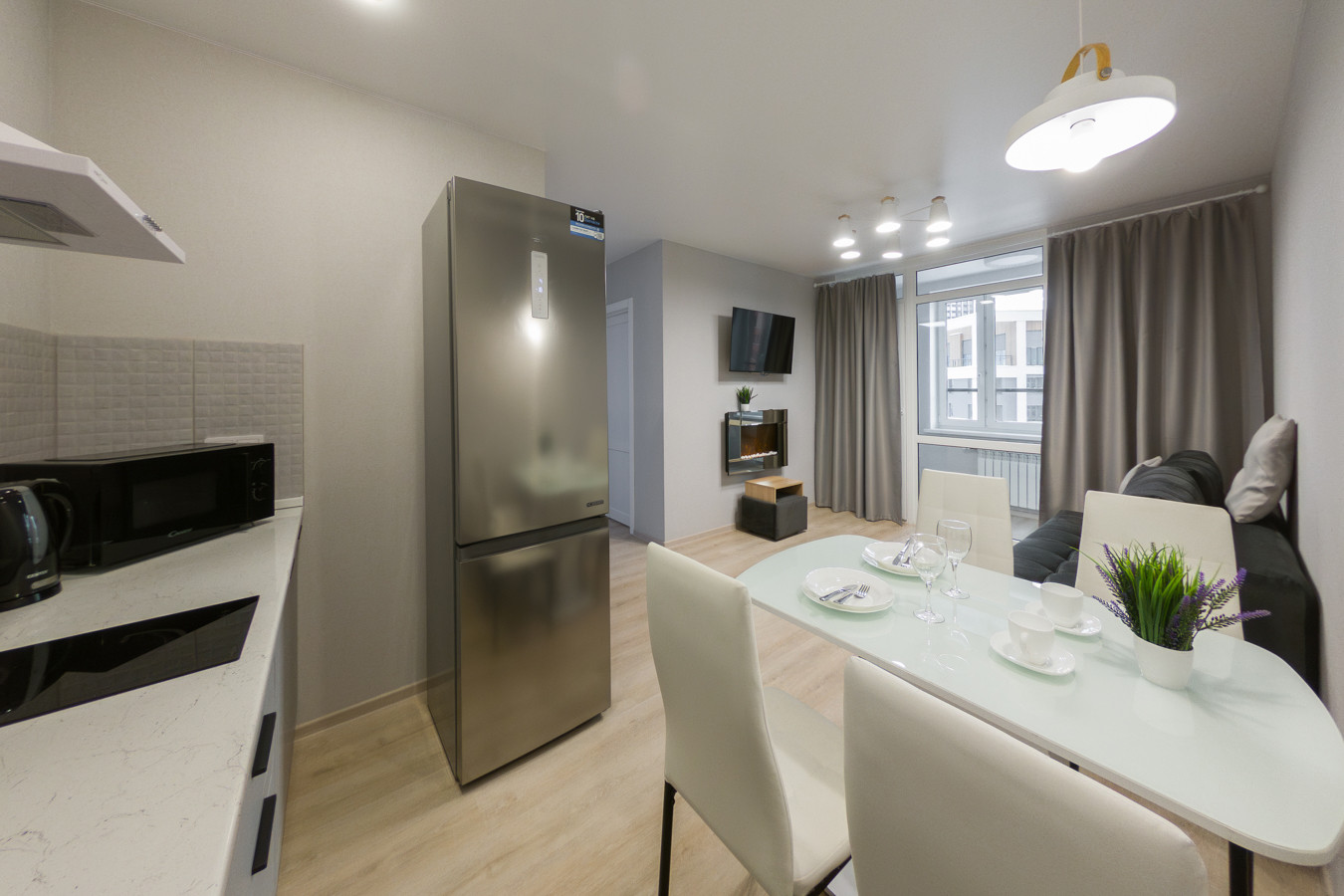 Новая ,современная 2 ух . комнатная квартира  с. КАМИНОМ и КОНДИЦИОНЕРОМ( установлен весна  2024 г.) кухня- гостиная с теплым балконом, отдельная спальня ) Комфорт класса в ЖК Парковый.
