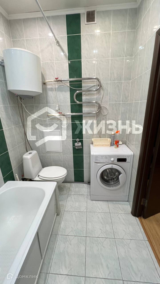 В квартире есть все необходимое для проживания: кухонный гарнитур, стол, табуретки, холодильник, микроволновая печь, вместительный шкаф-купе, диван, стиральная машина.