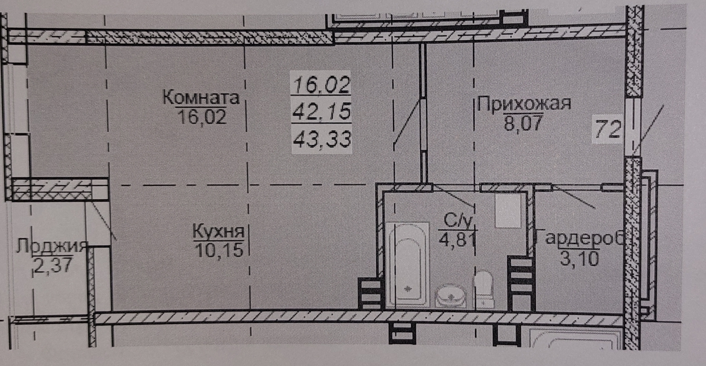Общая площадь 43 м2