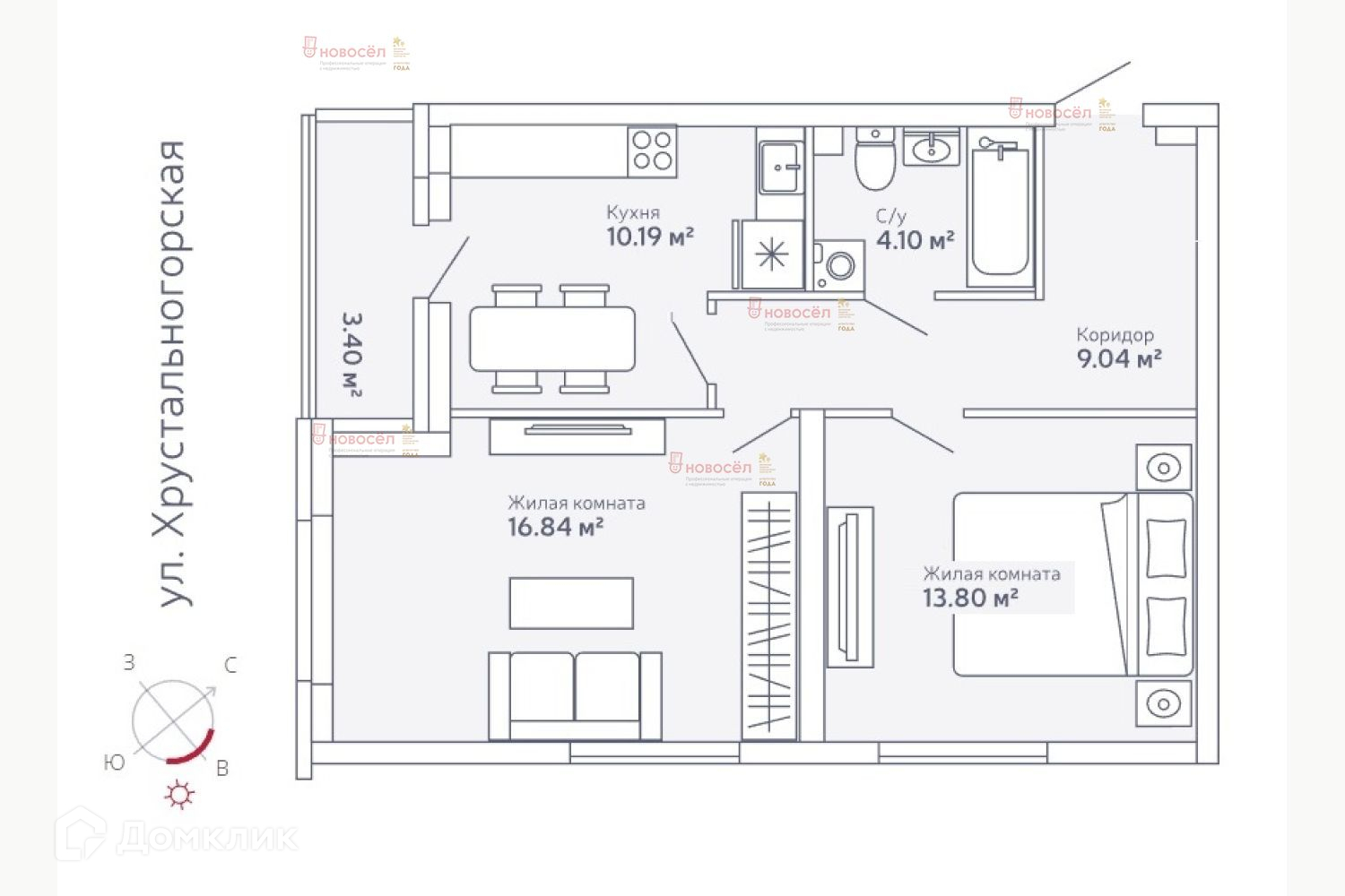 Объект № 187153. Сдам на долгий срок 2- комнатную квартиру 54 кв.м. на Широкой речке, Хрустальногорская, 93, 11 этаж, окна на две стороны света. Очень солнечная и теплая! Квартира просторная, новая, с ремонтом. С/у смежный. Нет стиральной машины. Из мебели: 2 дивана, 2 шкафа, кухонный гарнитур, холодильник, электроплита. При необходимости можно разместить свою мебель.