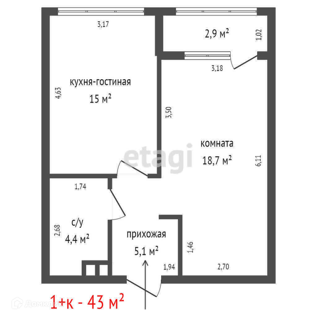 Общая площадь 43 м2