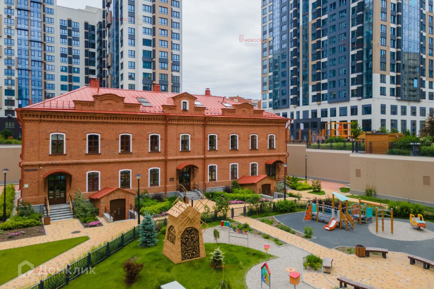 Развитая инфраструктура района. Красивая набережная района. Огромная детская площадка во дворе. Есть фитнес центр в доме.