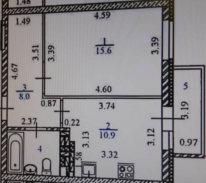 Жилая площадь 15.6 м2
