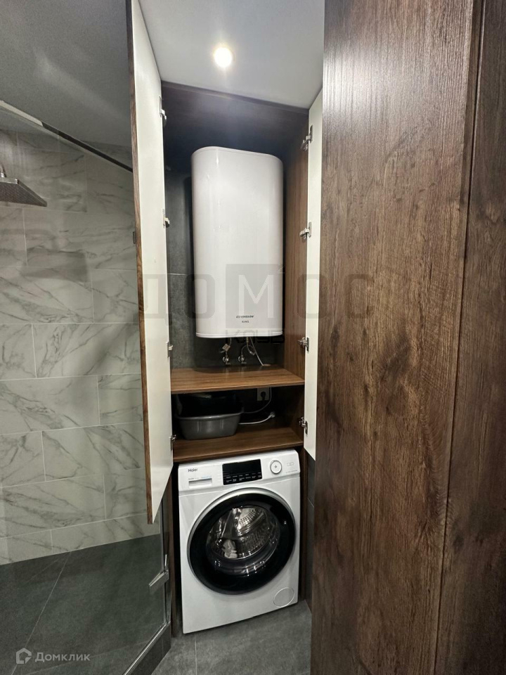 В кухне гостиной есть все необходимое, духовой шкаф, холодильник, стиральная машинка, диван, обеденная зона. Также есть пылесос, полотенцесушитель,