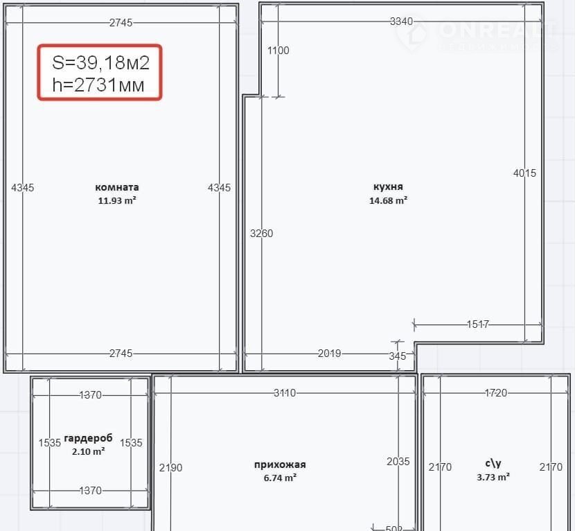 Общая площадь 39.2 м2