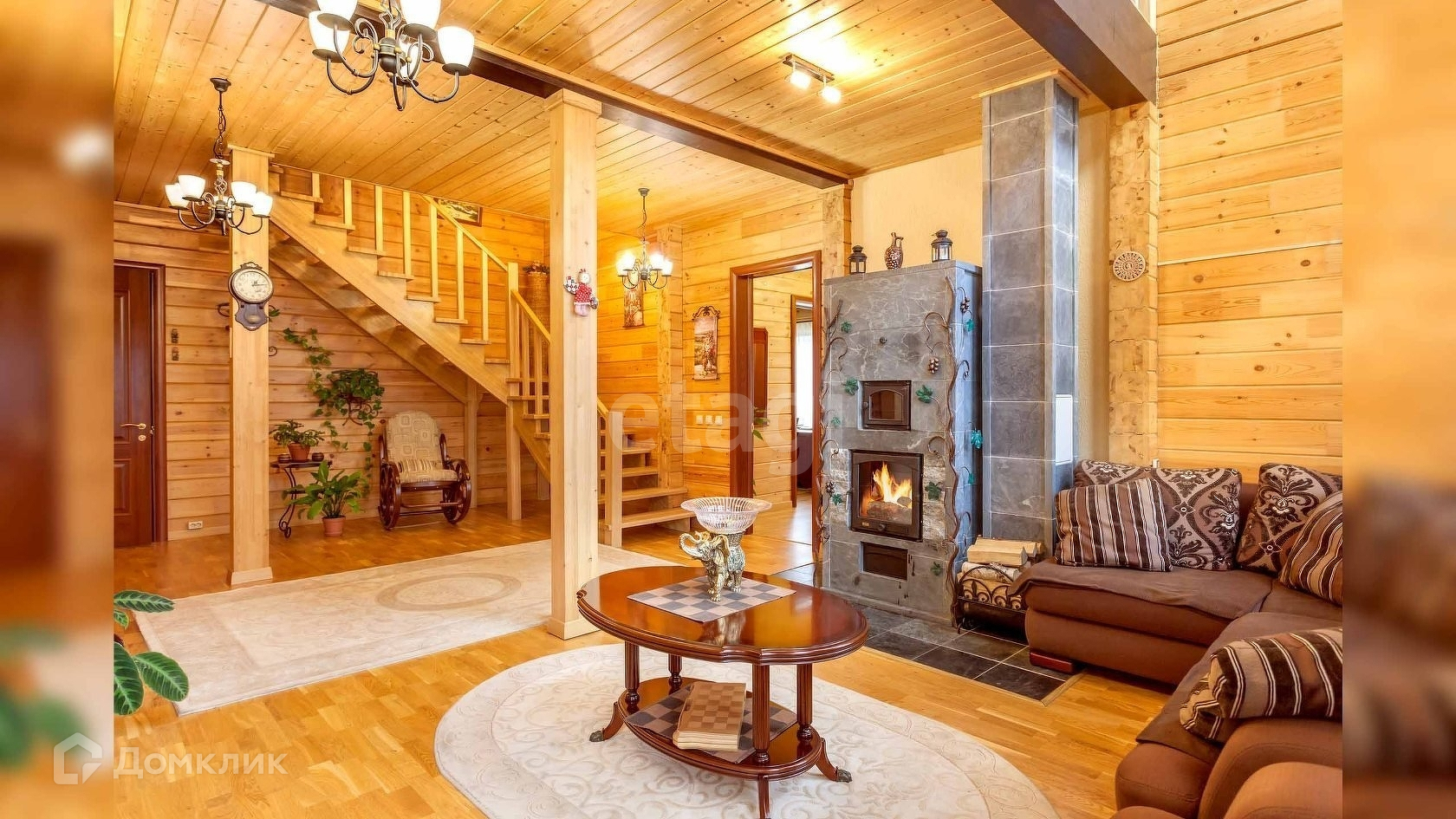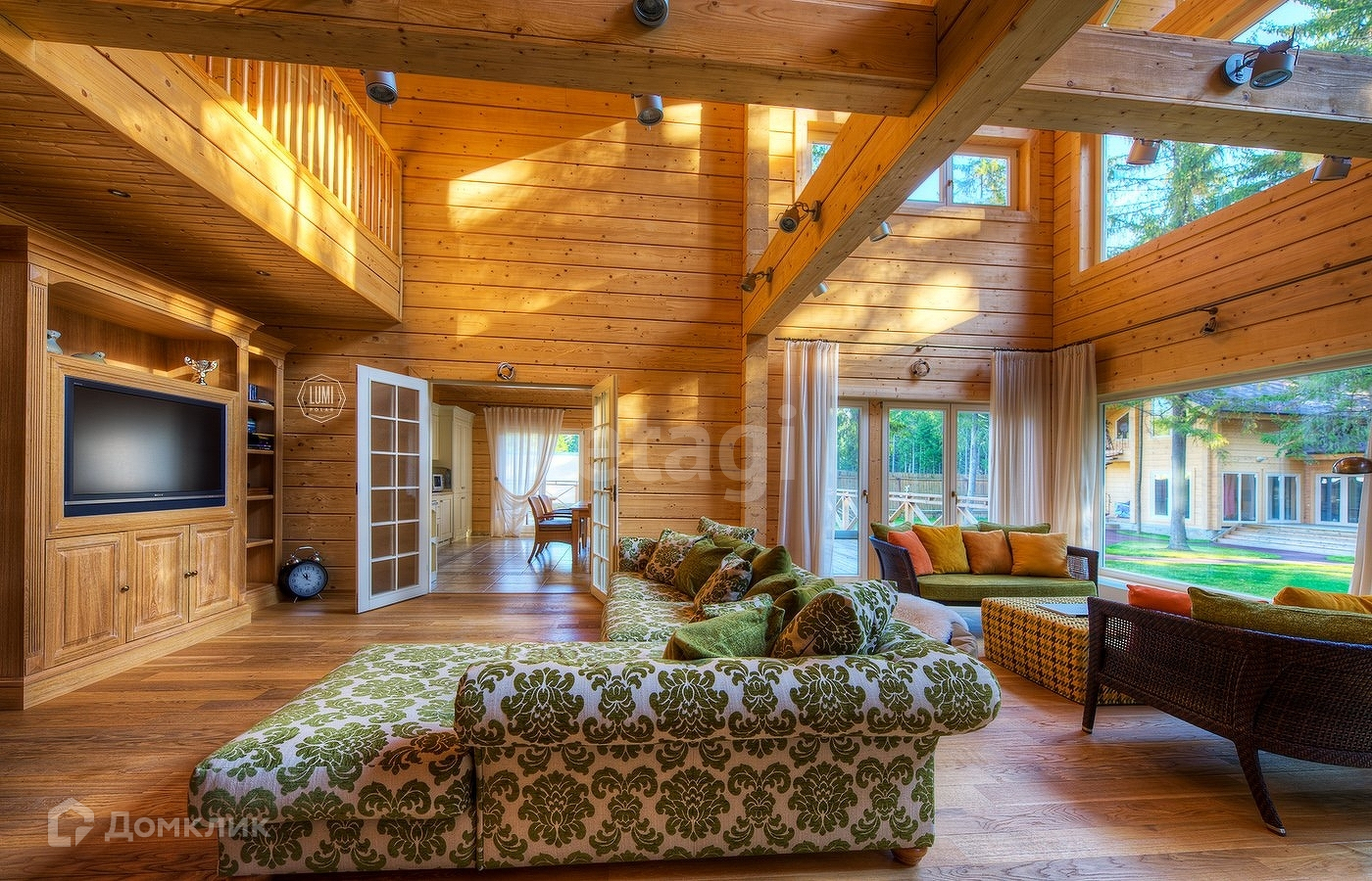 На первом этаже: Кухня-гостиная с электрическим камином. Кухонная зона из окрашенных фасадов МДФ, столешница из натурального кварцевого камня, встроенная немецкая техника "Teka", встроенный холодильник, а также посудомоечная машина "Neff",, установлен японский измельчитель продуктов , а также мойка и смеситель фирмы Omoikiri. Гостевая комната, кладовая, санузел. Просторная прихожая со встроенными шкафами, На застеклённой террасе установлена кухонная зона со встроенной газовой плитой для приготовления пищи летом и в солнечные дни зимой.