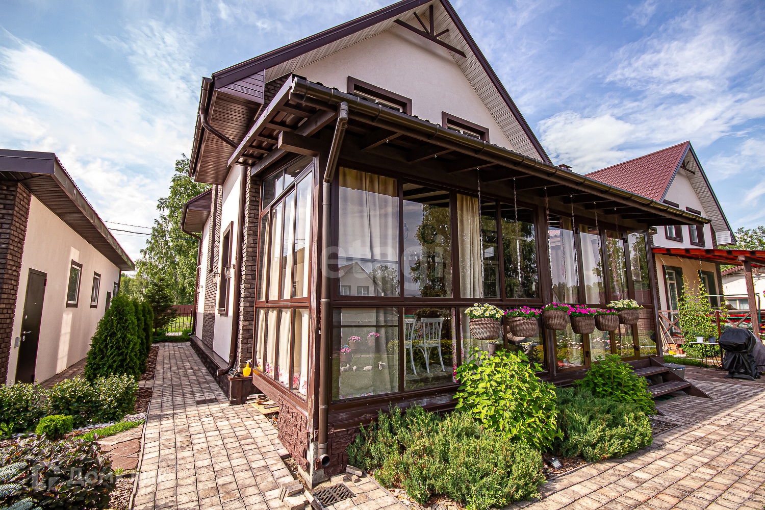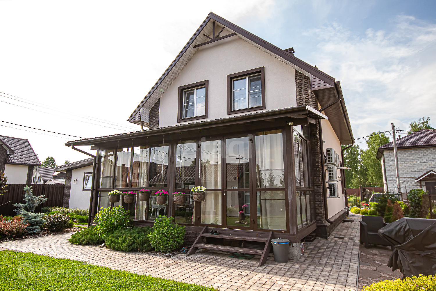 Установлены 4 кондиционера, в т.ч. и на террасе, заведен интернет и телевидение Ростелеком, установлена охранная сигнализация.