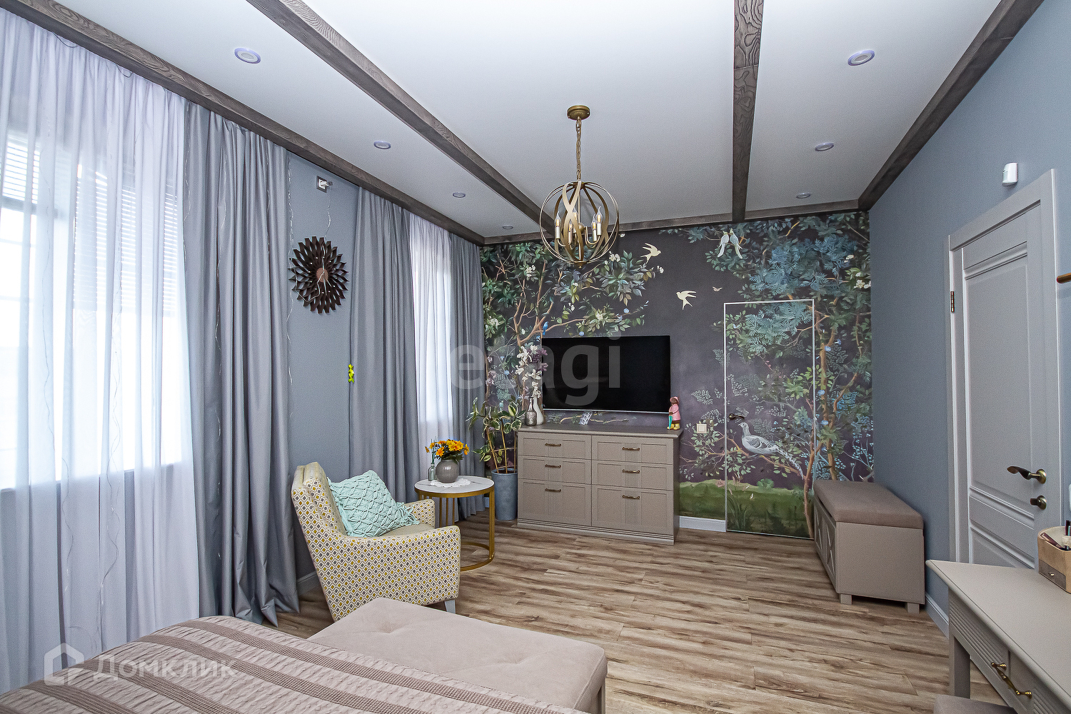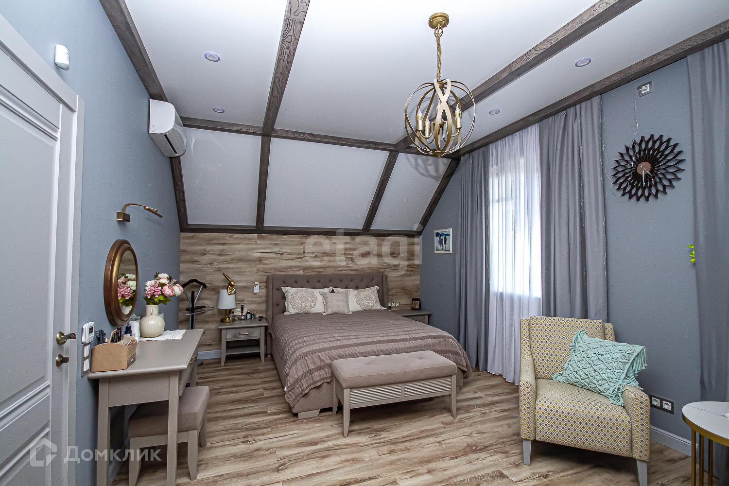 На 2 этаже: Мастер спальня с двумя окнами и гардеробной, установлена кровать с пультовым управлением, возможностью массажа и изменения положения тела, вторая спальня, санузел.