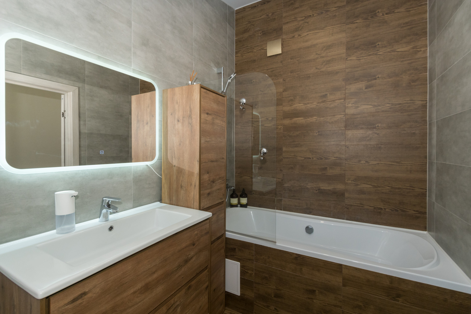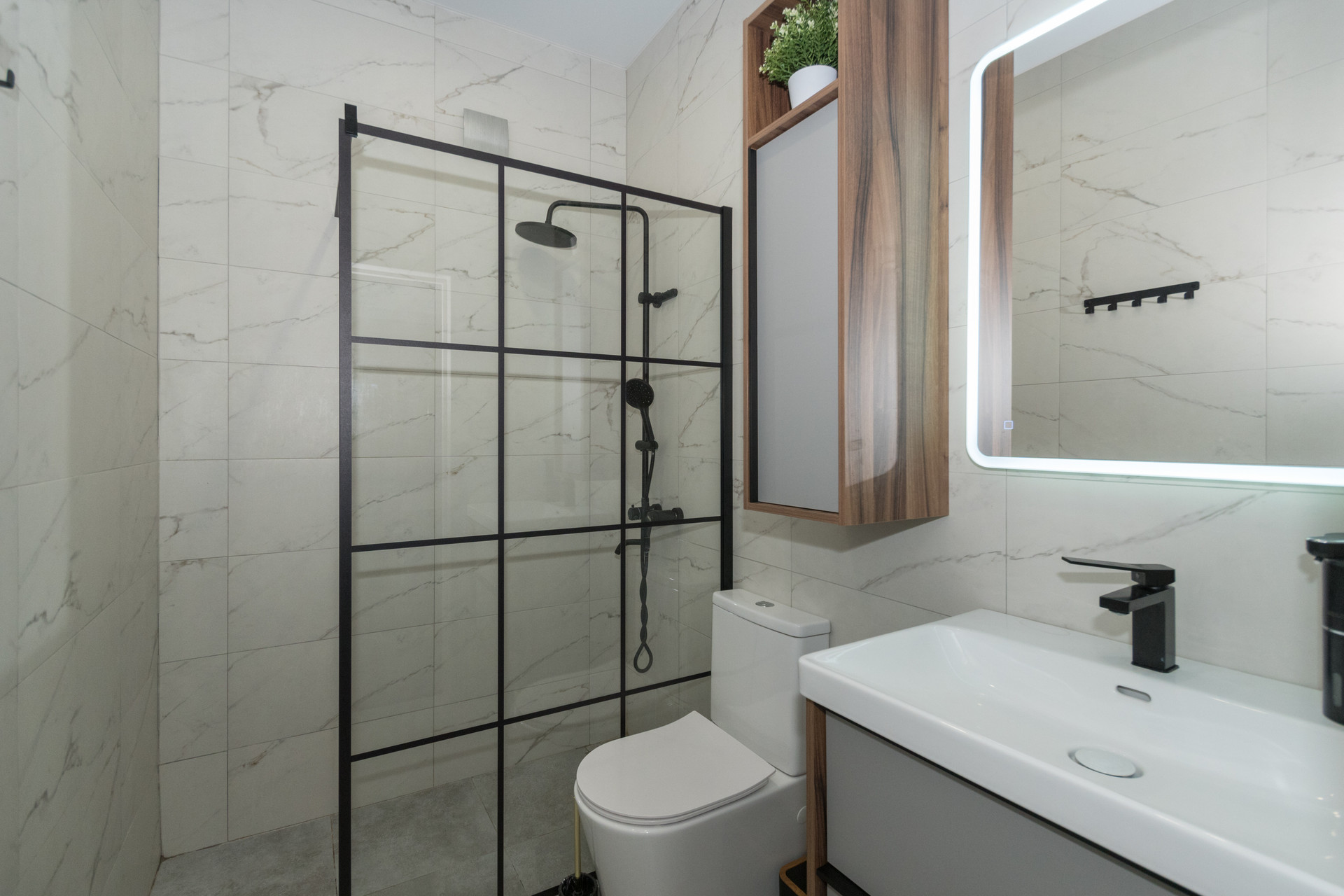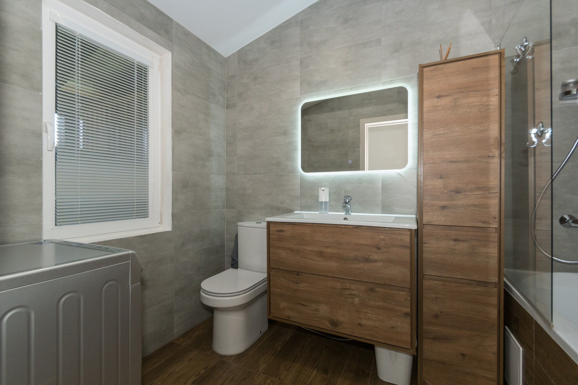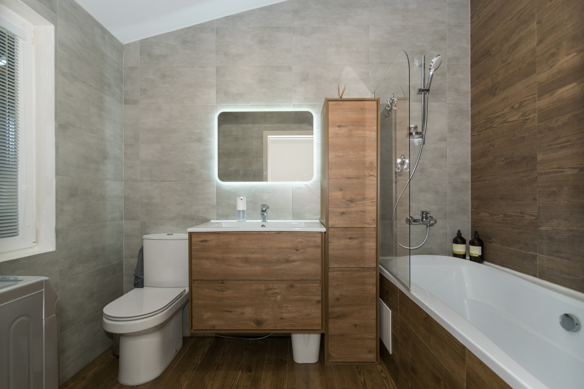 - Два санузла: С ванной 5,4 кв м и душевой кабиной 3,2 кв м