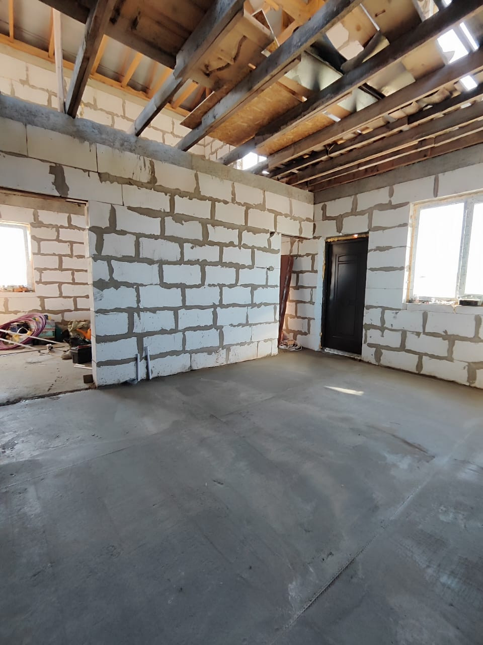 •    Сделан электрический теплый пол и залит стяжкой;