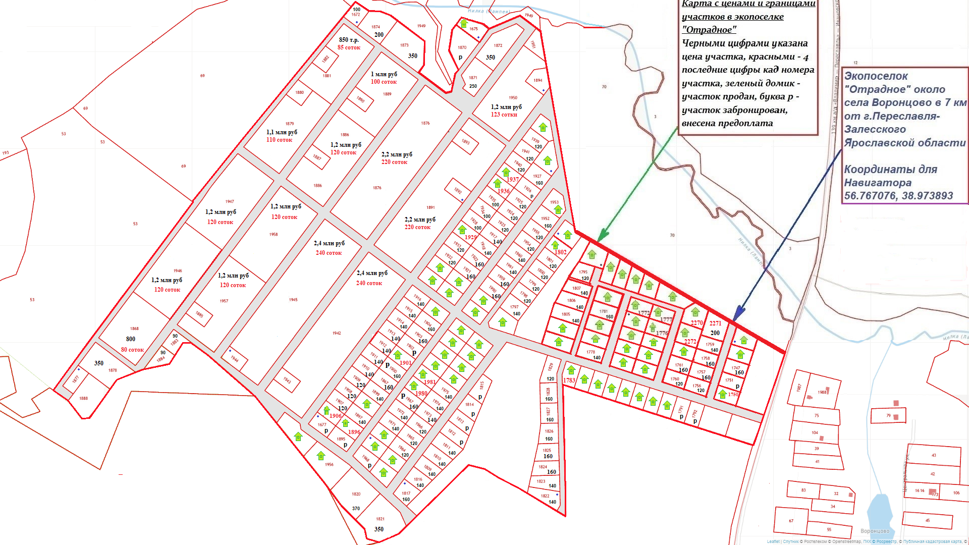 В Переславском районе в 7 км. от города Переславля-Залесского, в новом коттеджном ЭКОПОСЕЛКЕ «ОТРАДНОЕ» продаются земельные участки площадью от 10 соток до 2 гектар. Участки ровные, сухие, прямоугольной формы, к каждому участку есть подъезд, по границе проходит линия электропередач, на некоторых участках установлены электросчетчики (уточнять на месте). Поселок активно развивается и застраивается.