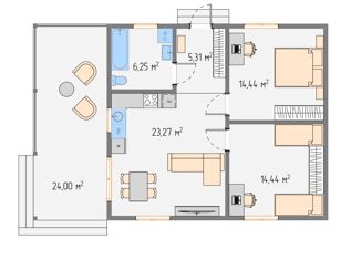Общая площадь: 75 м2