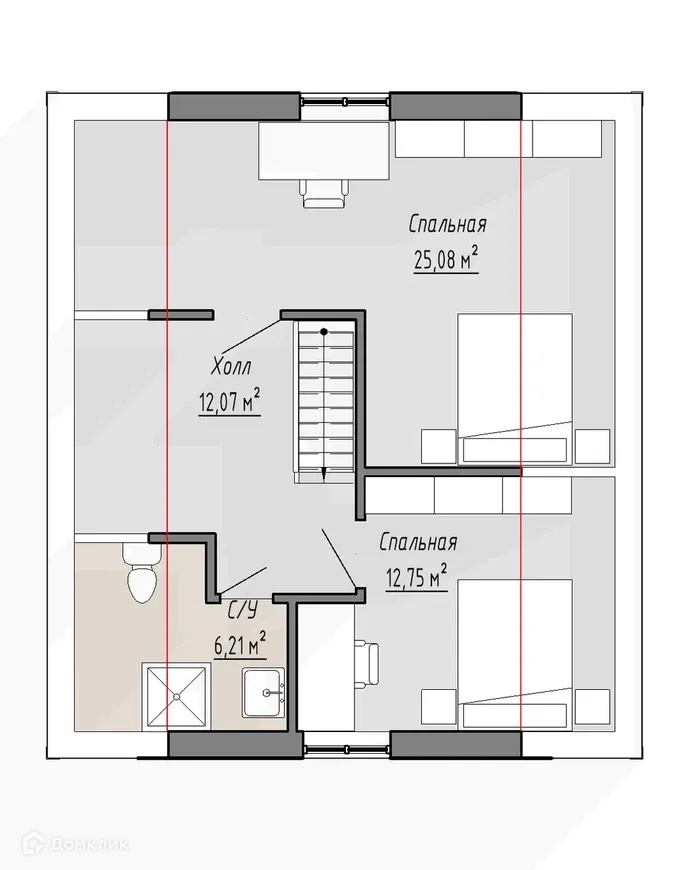 Удачная планировка: просторные, светлые спальни,