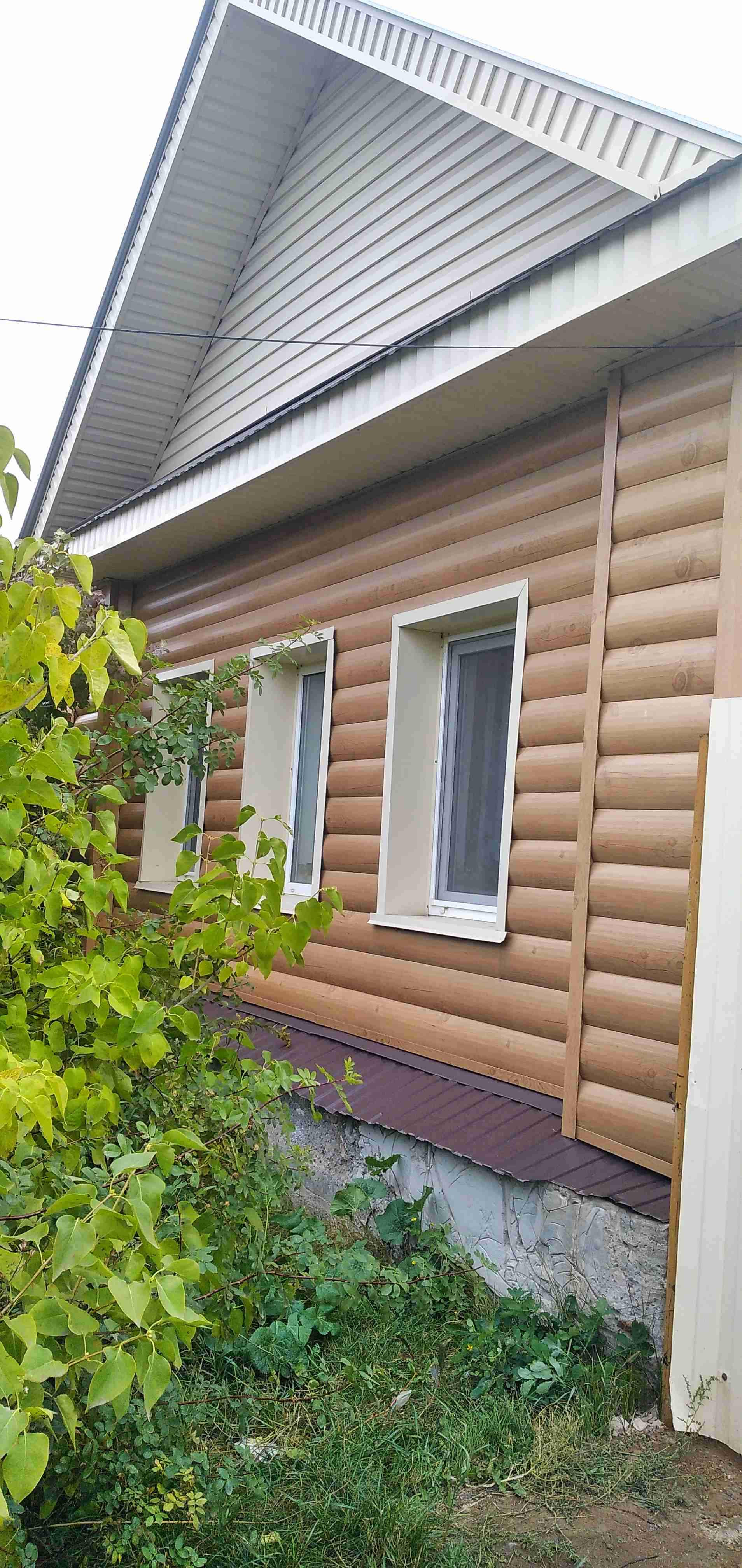 Дом со всеми коммуникациями, часть дома из бревна, часть из газобетонных блоков, обшит сайдингом, баня, гараж.