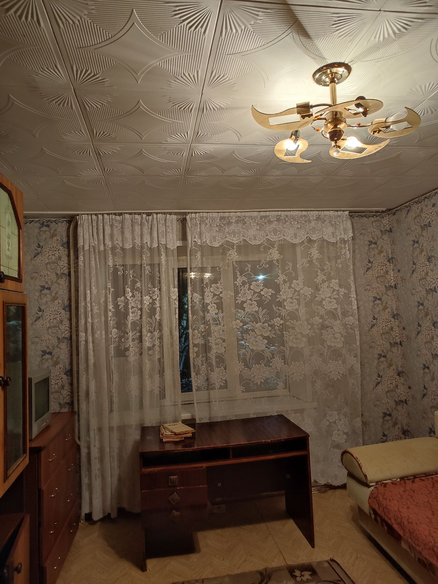 Состояние хорошее, окно пластиковое, остаются вся мебель и вся техника.
