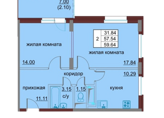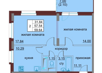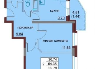 Двухкомнатная квартира на продажу, 55.8 м2